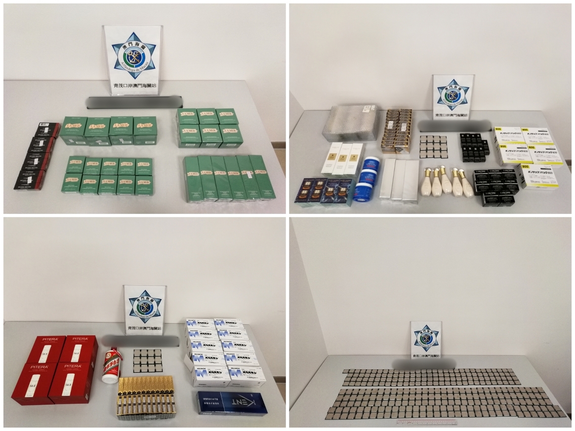 海关经过风险管理分析,预判水客活动将转移至利用跨境车辆及青茂口岸进行,海关针对上述两点加派关员及利用科技手段协助执法。于8月3日至4日期间,海关在关闸口岸出境车道及青茂口岸出境旅客检查区共查获21宗违法出口个案,分别以夹藏车箱暗格、藏身及以其他物品遮掩之方式企图蒙混过关, 查获货物包括美妆产品1,033件、电子产品及零件368件、海味干货4.44公斤、药物61件、酒类4.25升及旧手提电话74部。其中,在8月4日晚上,关员在关闸口岸出境车道对一辆可疑的跨境车辆进行截查期间,利用光纤镜检测设备在副驾驶座收纳箱后之隐密处发现4部旧手提电话,经彻底检查后,再于后座乘客位及车尾箱之暗格内发现44部旧手提电话,合共查获未有作出申报出口的旧手提电话48部。