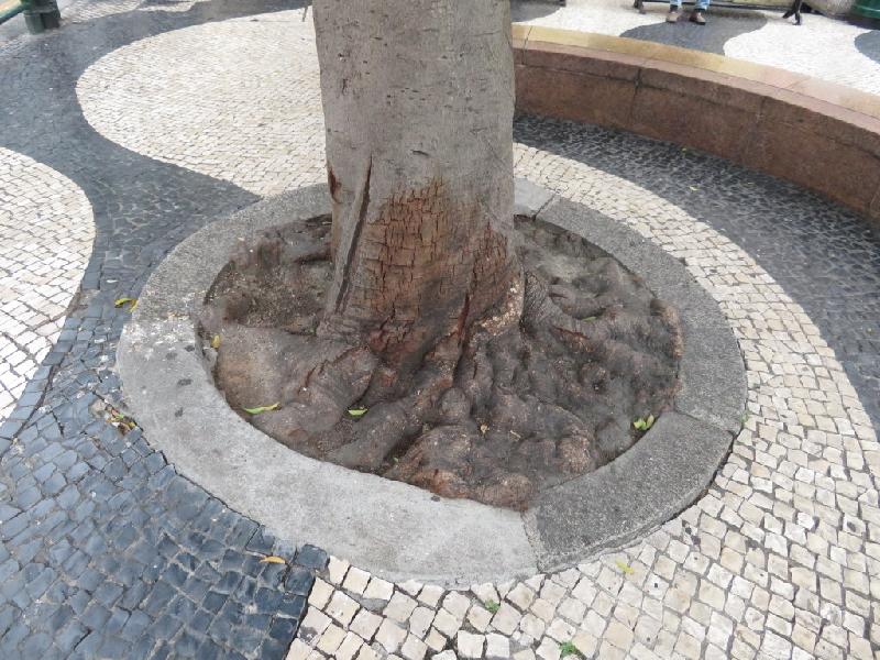 树木养护人员于2020年巡查时发现位于议事亭前地的一株阴香树,其树冠叶片有轻微黄化、树冠顶端的小枝有枯萎、基部长出灵芝类的子实体及干基部的树皮变色,并有部份呈现网格状的皱裂纹,有明显感染了灵芝类根腐菌的病征。养护人员随即展开一系列的救治措施,包括扩大树穴、清除路面硬物、松土、回填种植基质和树木透气棒、修剪腐烂根和刮走树基的真菌子实体、喷施促根剂和杀菌剂、加建支撑架稳固树身,并持续观察树木变化及加强养护。