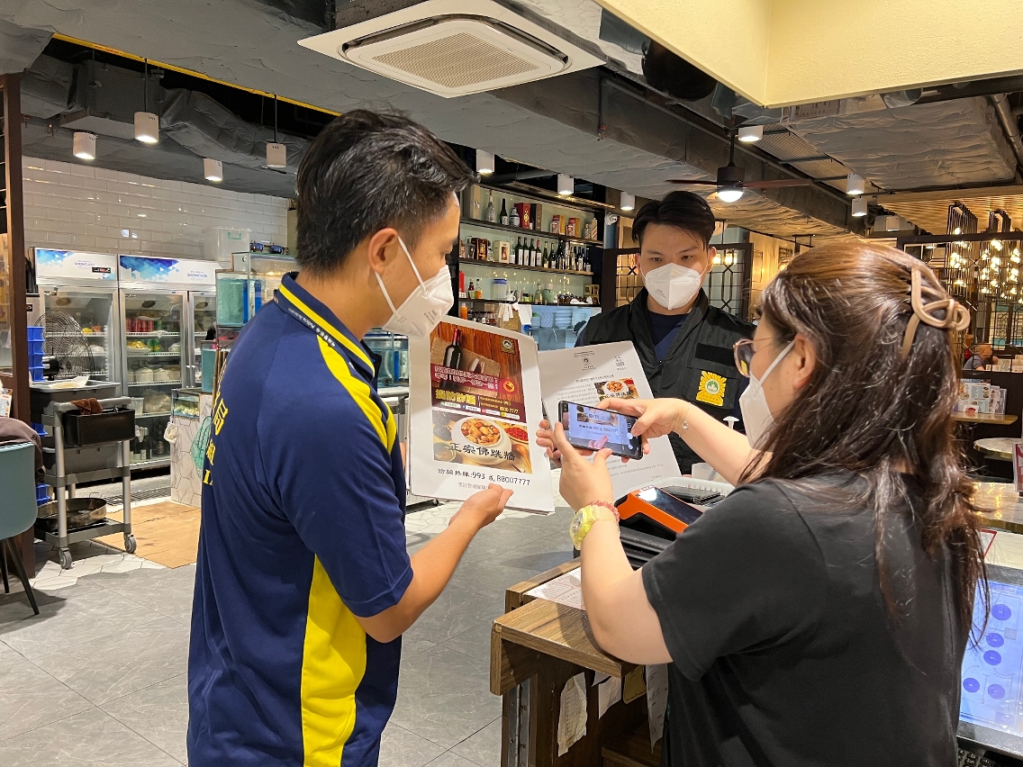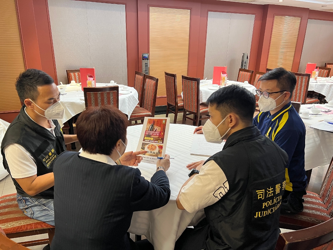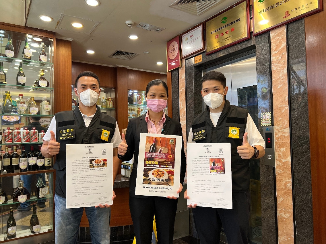 由于近期本澳及邻近地区均发生有不法之徒藉向食店订购食材或红酒等方式进行诈骗,为提高饮食业界的防骗意识,司法警察局走访业界展开防骗宣传,冀促进警民合作,共同防罪灭罪。