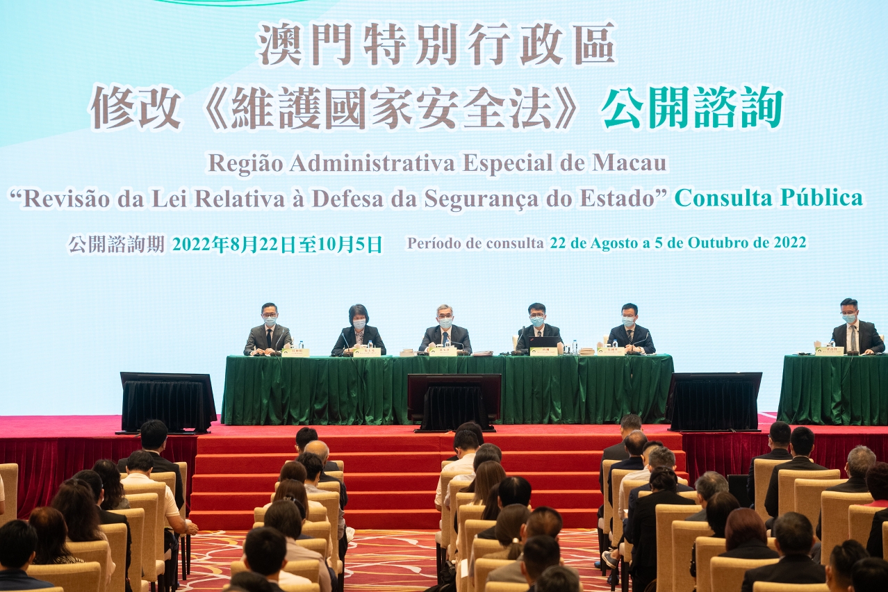 黄少泽司长表示,安全是发展的前提,发展是安全的保障。只有国家安全、社会稳定,经济社会才能持续健康发展,因此统筹安全与发展,是澳门特区落实“总体国家安全观”的一项重要工作。特区政府期望透过这次全面修订《维护国家安全法》,可以克服法律现存的问题和不足,全面提升澳门特区维护国家安全的能力,切实维护国家主权、安全和发展利益,以及澳门社会持续繁荣稳定。