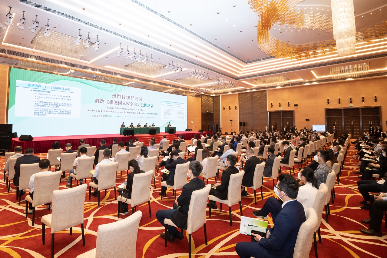 澳门特别行政区今(27)日就修改第2/2009号法律《维护国家安全法》举行第二场公开咨询会,听取经济界别的意见和建议。咨询会下午3时在中国与葡语国家商贸合作服务平台综合体会议厅举行,近200人出席了咨询会。