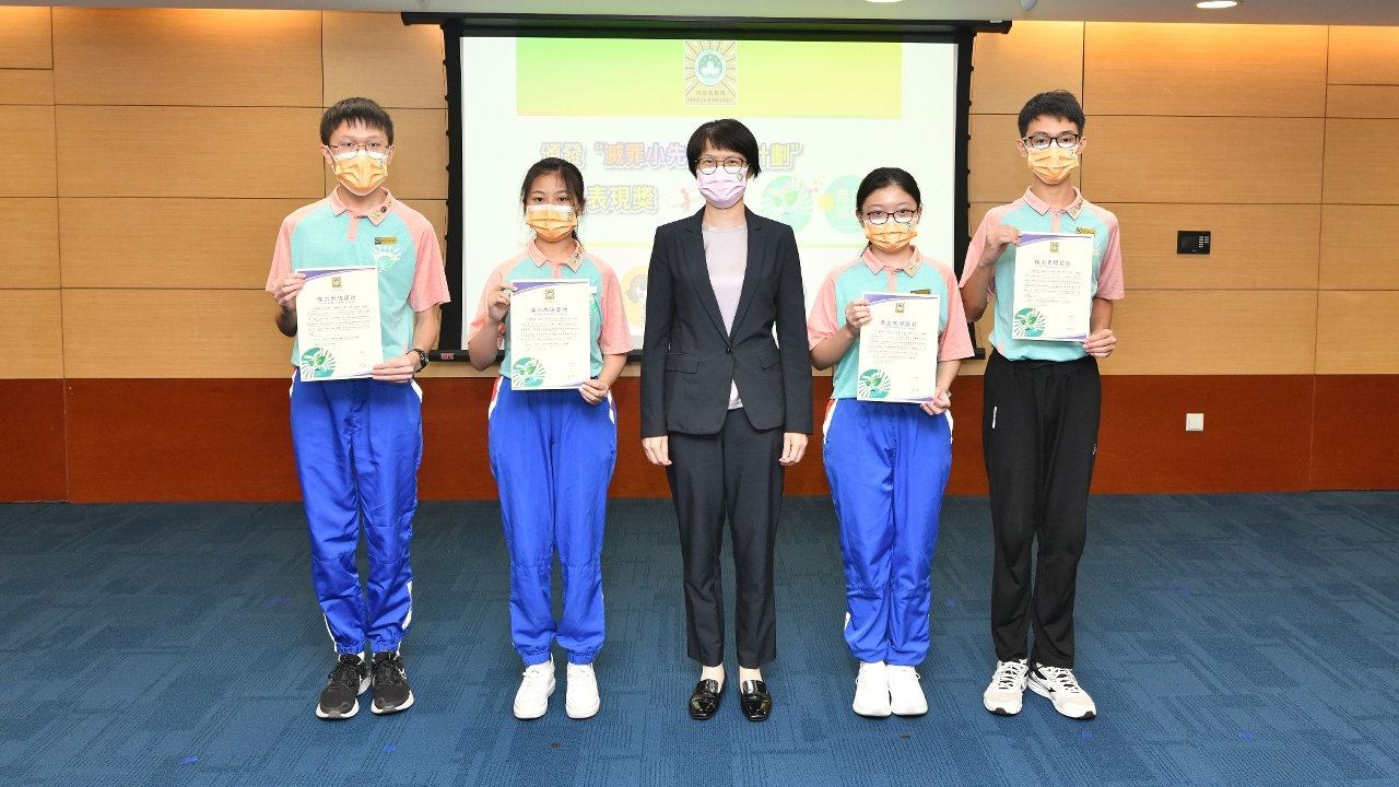 为配合澳门特区政府青年政策,增强青年人的国家观念、社会责任感和法治意识,司法警察局自去年暑假起续办第四届“社区安全青年领袖计划”及第九届“灭罪小先锋种子计划”,学员完成为期一年的培训课程,今获颁结业证书。司警局局长薛仲明勉励学员继续发扬爱国爱澳、勇于承担的精神,在青少年群体中发挥正面影响力,带动更多年轻人关心和服务社会,为祖国和澳门的建设发展贡献力量。