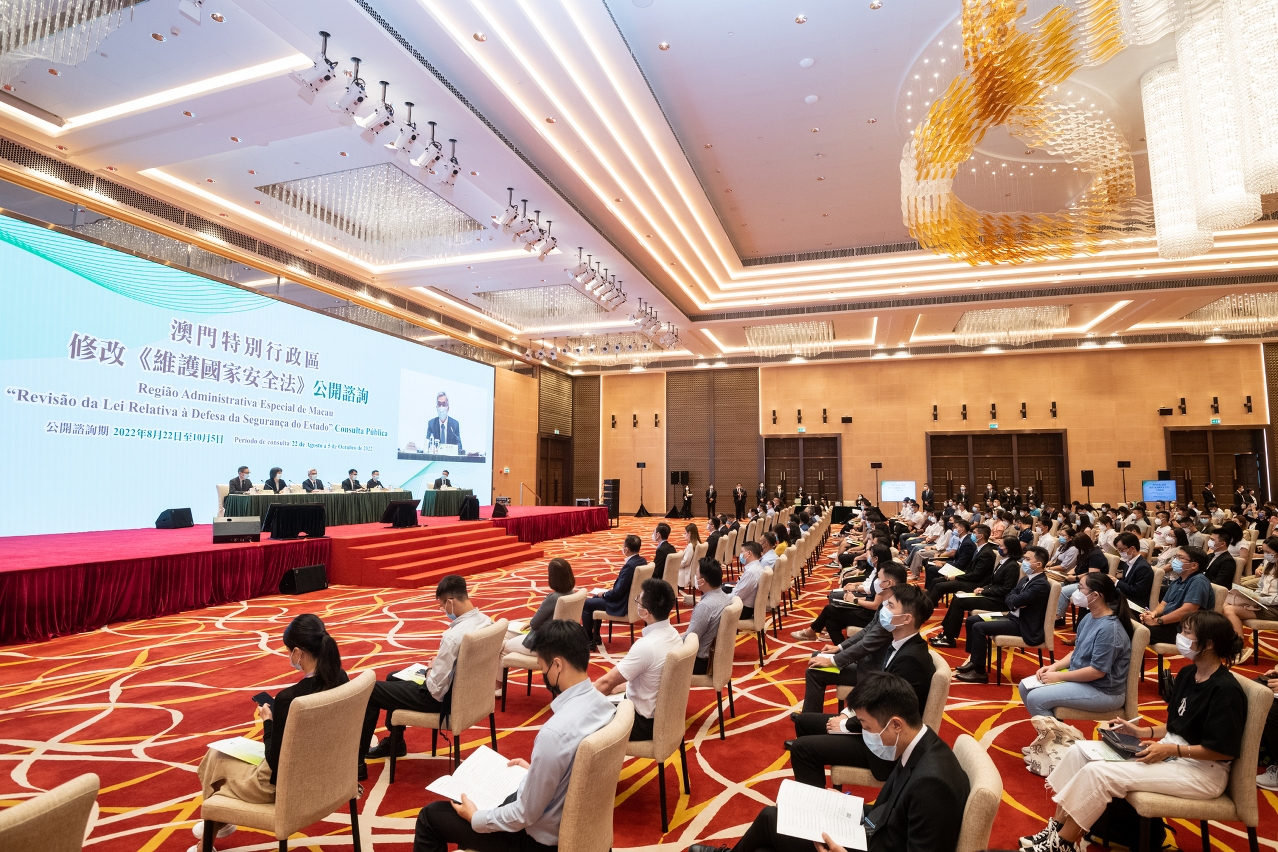 澳门特别行政区今(3)日就修改第2/2009号法律《维护国家安全法》举行首场公众咨询会,听取社会大众的意见和建议。咨询会下午3时在中国与葡语国家商贸合作服务平台综合体会议厅举行,逾200名市民出席了咨询会。