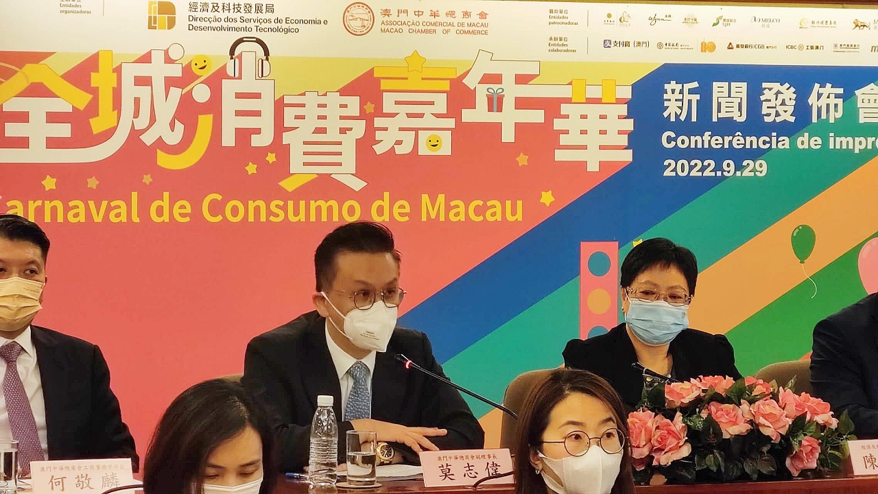 特区政府为应对疫情推出的“2022年百亿抗疫援助措施”正陆续落实。其中,经济及科技发展局与澳门中华总商会将合办大型促进消费活动“2022年全城消费嘉年华",并于今(29)日在澳门中华总商会大厦五楼举行新闻发布会,介绍活动详情。