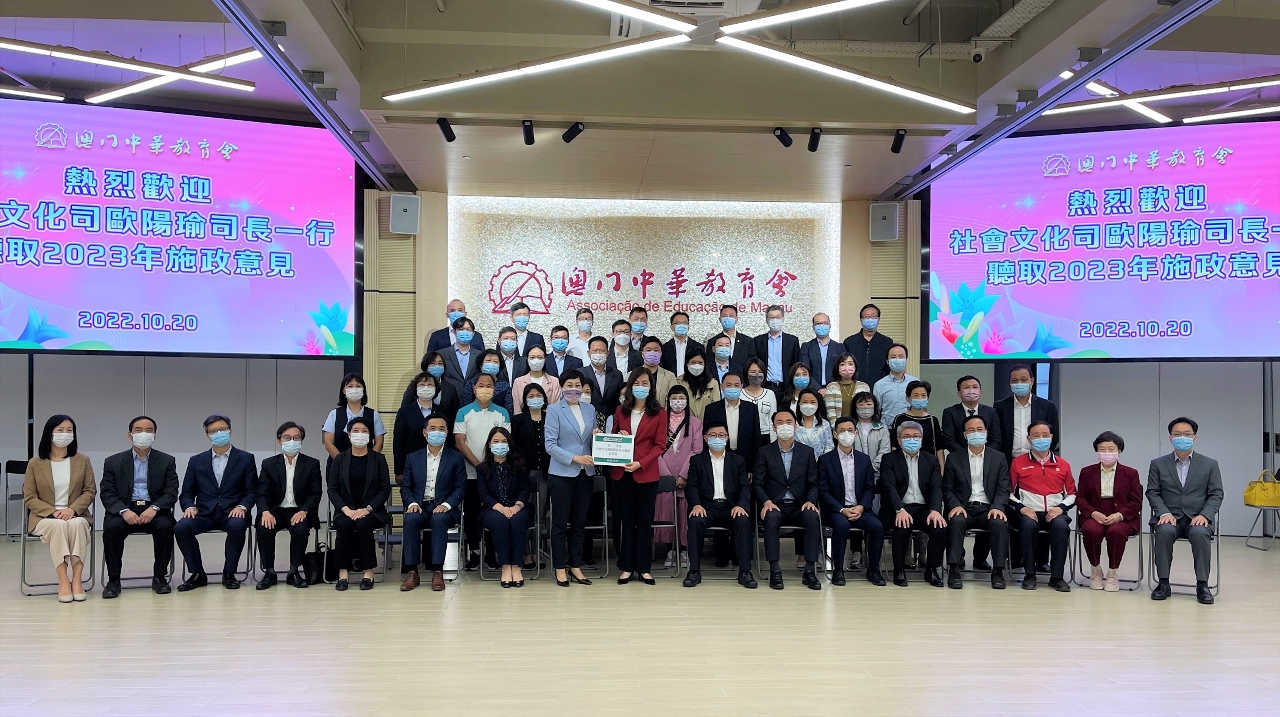 社会文化司欧阳瑜司长近月率领辖下团队拜访了澳门工会联合总会、澳门街坊会联合总会、澳门妇女联合总会、澳门中华总商会、澳门归侨总会、民众建澳联盟、澳门经济民生联盟、澳门中华教育会、澳门天主教学校联会;以及与澳门中华新青年协会、澳门青年联合会、澳门中华学生联合总会,还有文化、体育界别的专业委员会交流,听取和收集各界对社文范畴2023年施政工作的意见和建议。