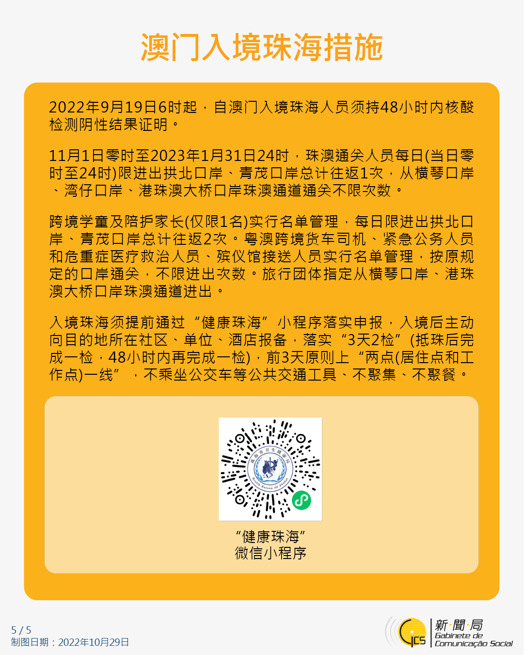 【图文包】最新入境澳门的防疫措施 (2022/10/29)