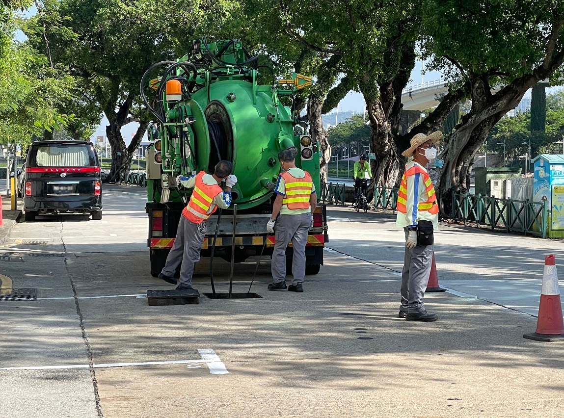 市政署一方面已加强检查及清理各主要排涝泵站的格栅和水泵机组、电动水闸、后备电源、远程监控系统的运作情况;亦一如既往,安排渠务前线人员于风雨季期间实行二十四小时待命制度,于发出黄色或以上暴雨讯号期间及八号风球生效期间,派员驻守部分排涝泵站,提前调控水泵运作。同时,紧急清渠应变小组人员、外判清渠工作人员会到各积水易发点清理路边雨水井冲积的垃圾,并在安全情况下打开渠盖疏导路面积水,加快城市排涝能力。