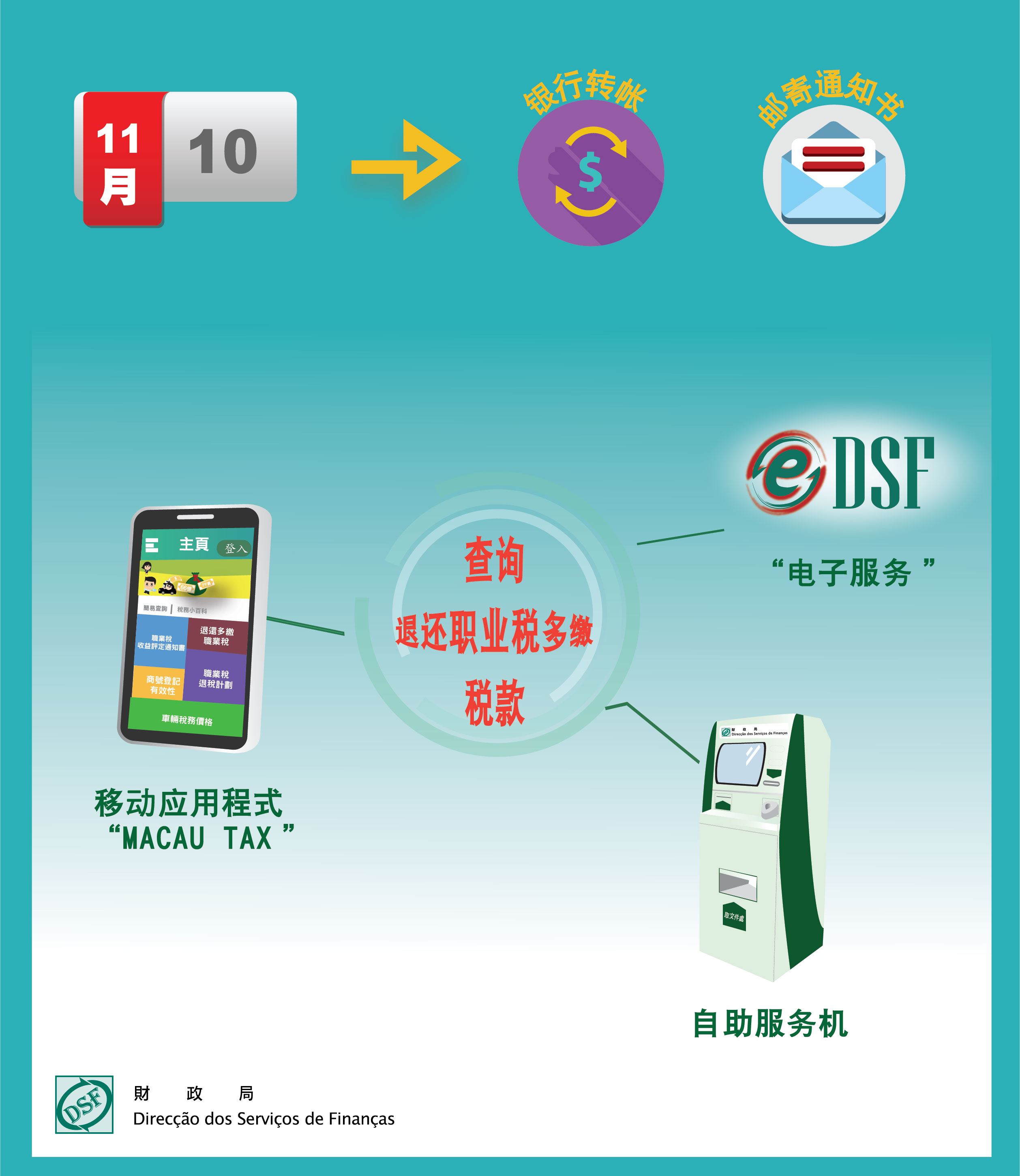 财政局提醒有多缴2021年度职业税纳税人可透过财政局电子方式,包括:财政局「电子服务」系统、移动应用程式「澳门税务资讯Macau Tax」,以及自助服务机,直接查阅其本人之职业税退税资料。