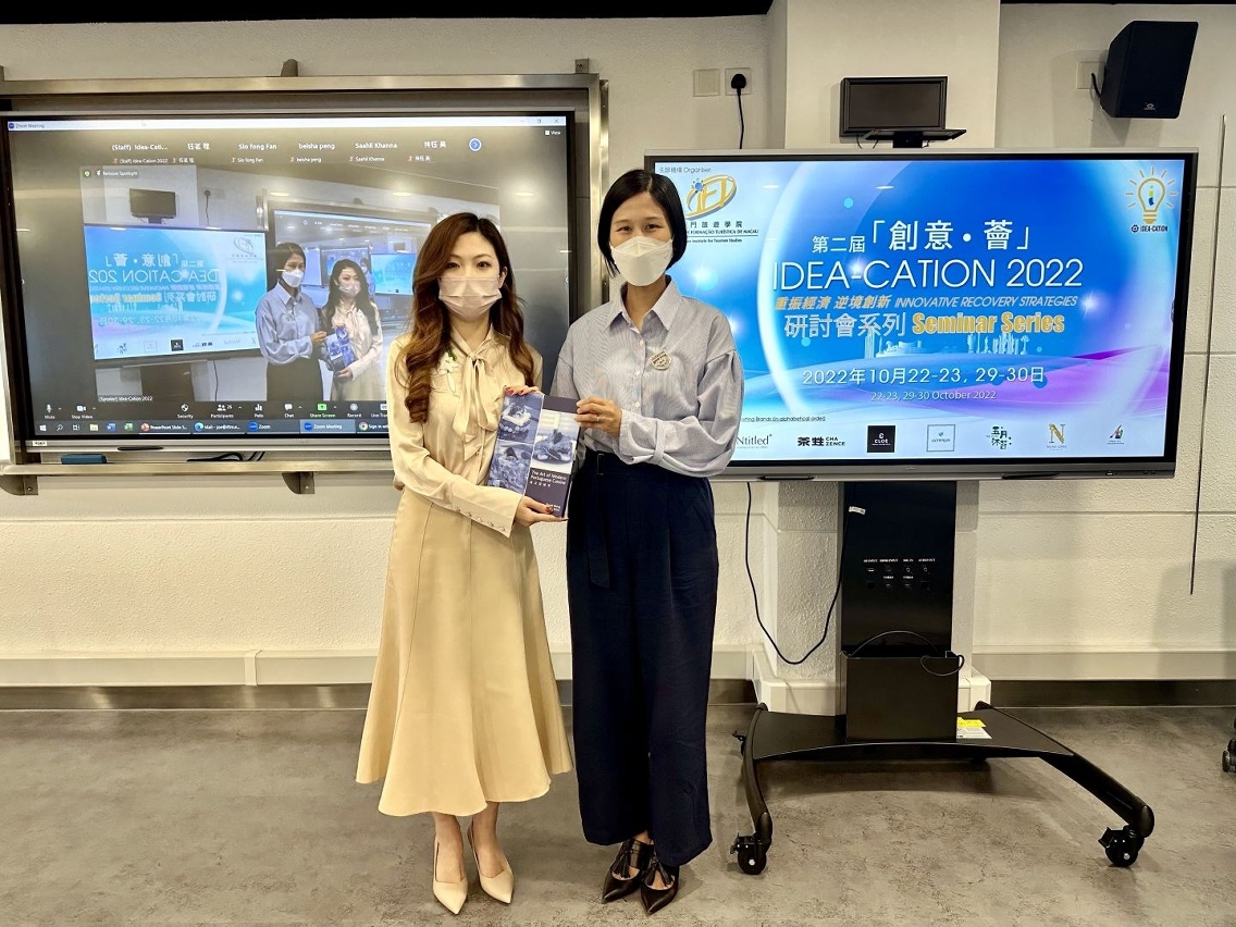 澳旅院不久前完成了为期四天的系列研讨会,作为2022年度“创意‧荟”大赛的活动亮点之一,为一众参赛者提供了宝贵的知识。该系列研讨会邀请了来自多个不同领域的专家作为演讲嘉宾。刘华智先生分享了他对商业品牌设计的见解;欧俊杰先生分享了他一系列品牌的发展故事和经验;罗导谦博士则为参赛者分享了多个创意、创业用的评量指标工具。劳锦辉先生提供了关于在大湾区营商的实用讯息;最后,刘燕娜小姐举办了一个有关社交媒体营销及运用关键意见领袖(KOL)来进行营销的工作坊。