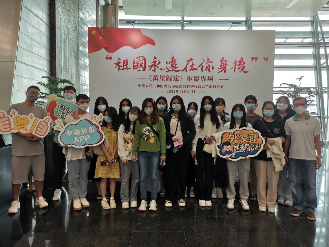 澳门旅游学院组织学生于11月19日观看了由外交部驻澳门特别行政区特派员公署安排的“祖国永远在你身后”—《万里归途》电影专场。