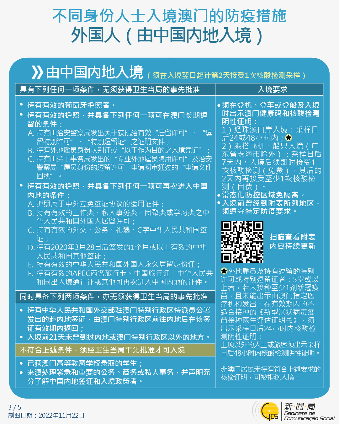 【图文包】最新入境澳门的防疫措施 (2022/11/29)