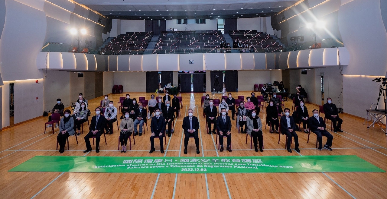 为响应联合国所订定的「国际复康日」,社会工作局联同7 个公共部门以及23个社会服务团体,于12月3日上午在澳门圣保禄学校礼堂举办「2022年国际复康日活动 - 国家安全教育讲座」,期望透过活动增加本澳残疾社群对国家安全的认识,从中体悟到“有国才有家”。活动以线上及线下方式同步进行,共有26间康复机构,约500人参与。活动按照参与者的不同需要,提供多项无障碍设施支援,包括无障碍通道、手语翻译、文字速录、口述影像等,以实践「均等机会,全面参与」的理念。