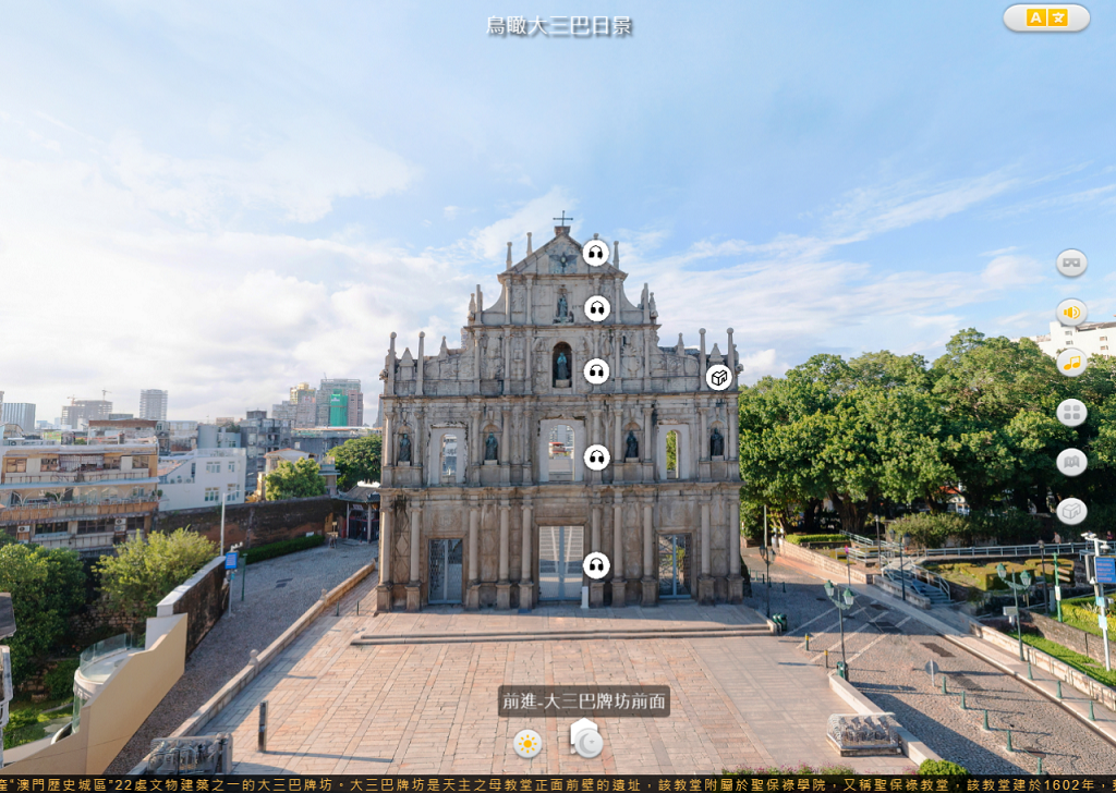 文化局积极推动文化遗产的数字化展示,持续丰富本澳线上文旅资源,去年以“东望洋炮台"及“郑家大屋"作为试点,推出线上VR虚拟导览服务,广受市民游客欢迎。今年,文化局再为五处文物景点新增线上VR导览功能,包括圣保禄学院天主之母教堂遗址(俗称:大三巴牌坊)、城墙遗迹(圣方济各斜巷一段)、卢家大屋、哪咤庙(大三巴)及文化局辖下大三巴哪咤展馆。