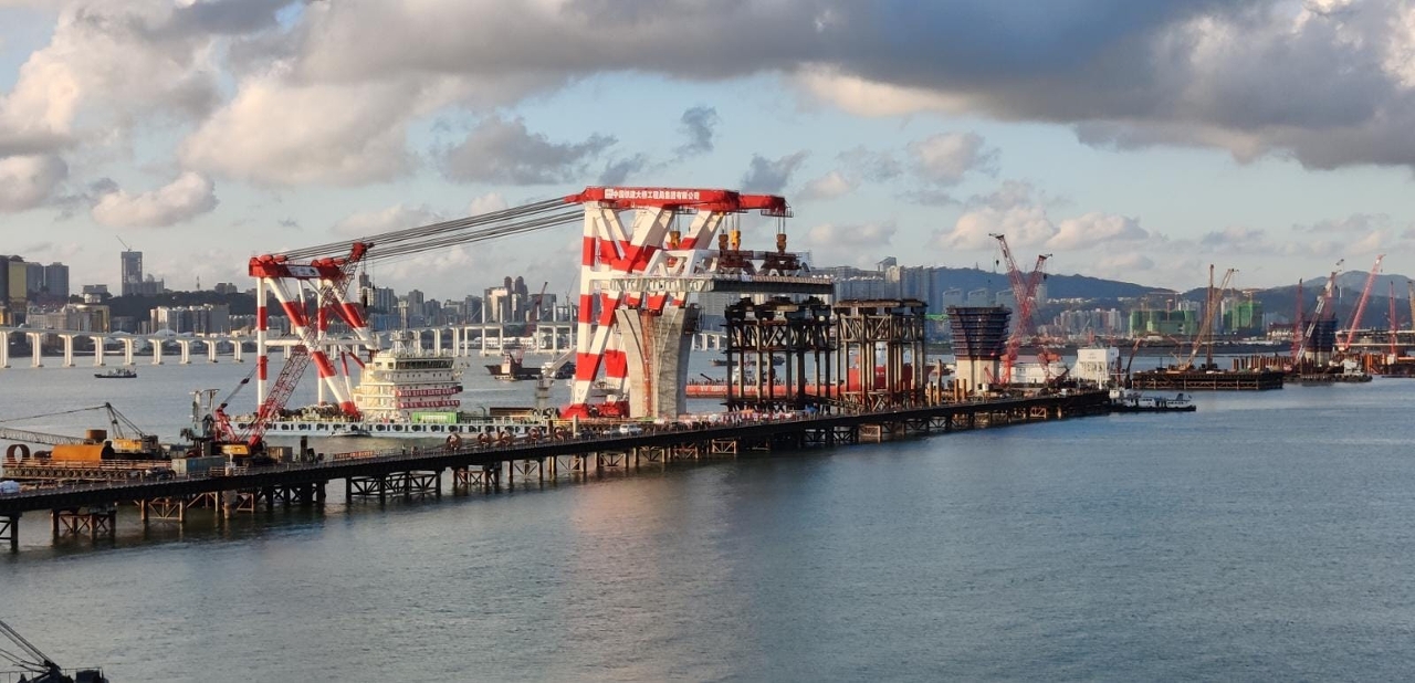 第四条跨海大桥将进行主桥边跨钢梁进行吊装工作