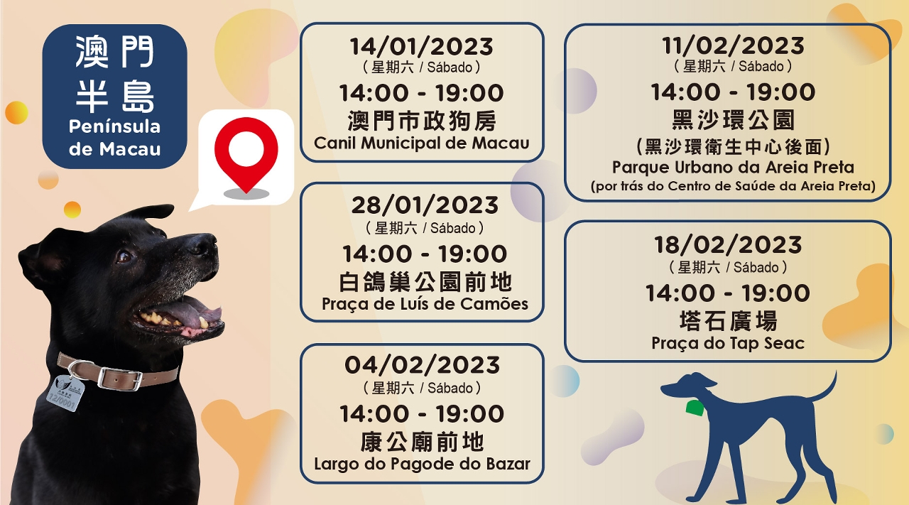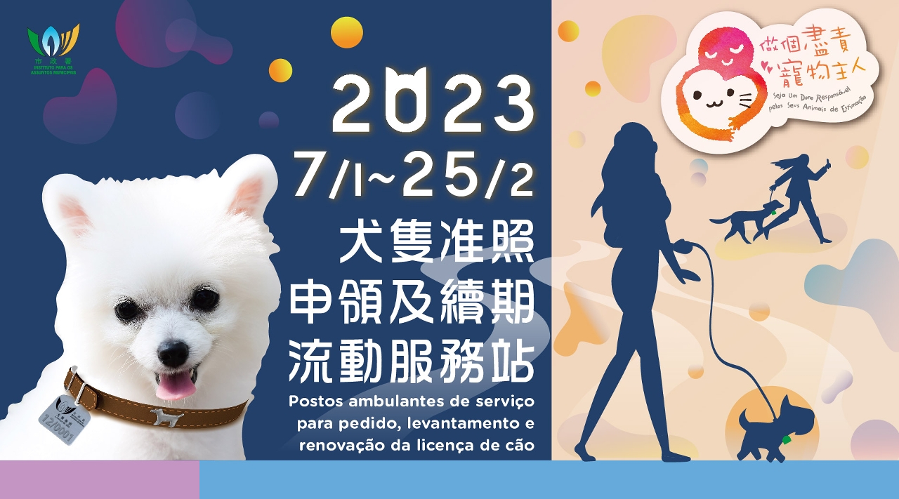 此外,市政署亦将于明年一月七日至二月二十五日期间,于全澳各区巡回设置“犬只准照申领及续期流动服务站”,方便市民办理相关手续。站点包括石排湾业兴大厦、澳门市政狗房、白鸽巢公园前地、康公庙前地、黑沙环公园及氹仔运动场圆形地,具体地址及时间可参阅市政署网页。