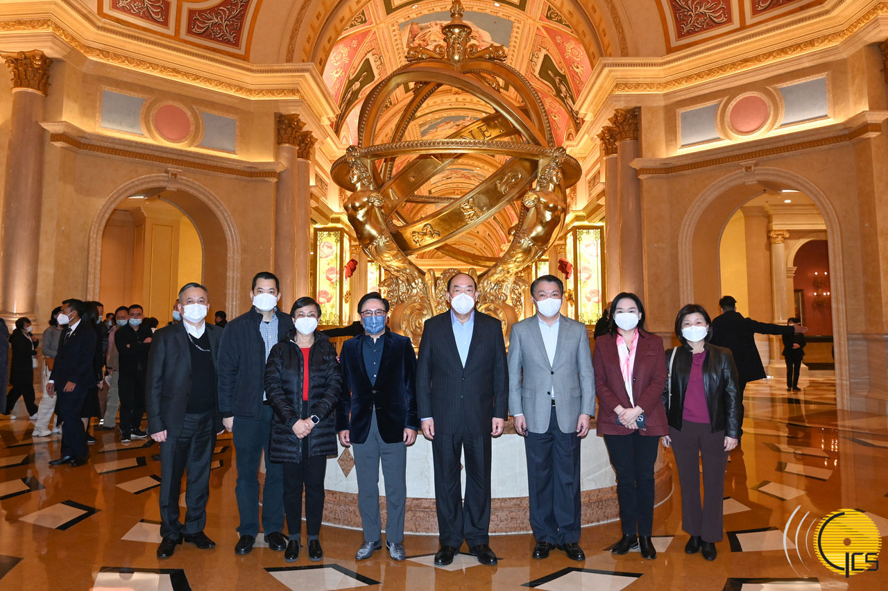 在经济财政司司长李伟农、行政长官办公室主任许丽芳、经济财政司司长办公室主任辜美玲、旅游局局长文绮华、博彩监察协调局局长何浩瀚,以及澳门贸易投资促进局代主席余雨生陪同下,行政长官伉俪下午先后到访美狮美高梅、新濠天地、永利皇宫、澳门上葡京、澳门威尼斯人以及澳门银河等各企业的休闲设施。