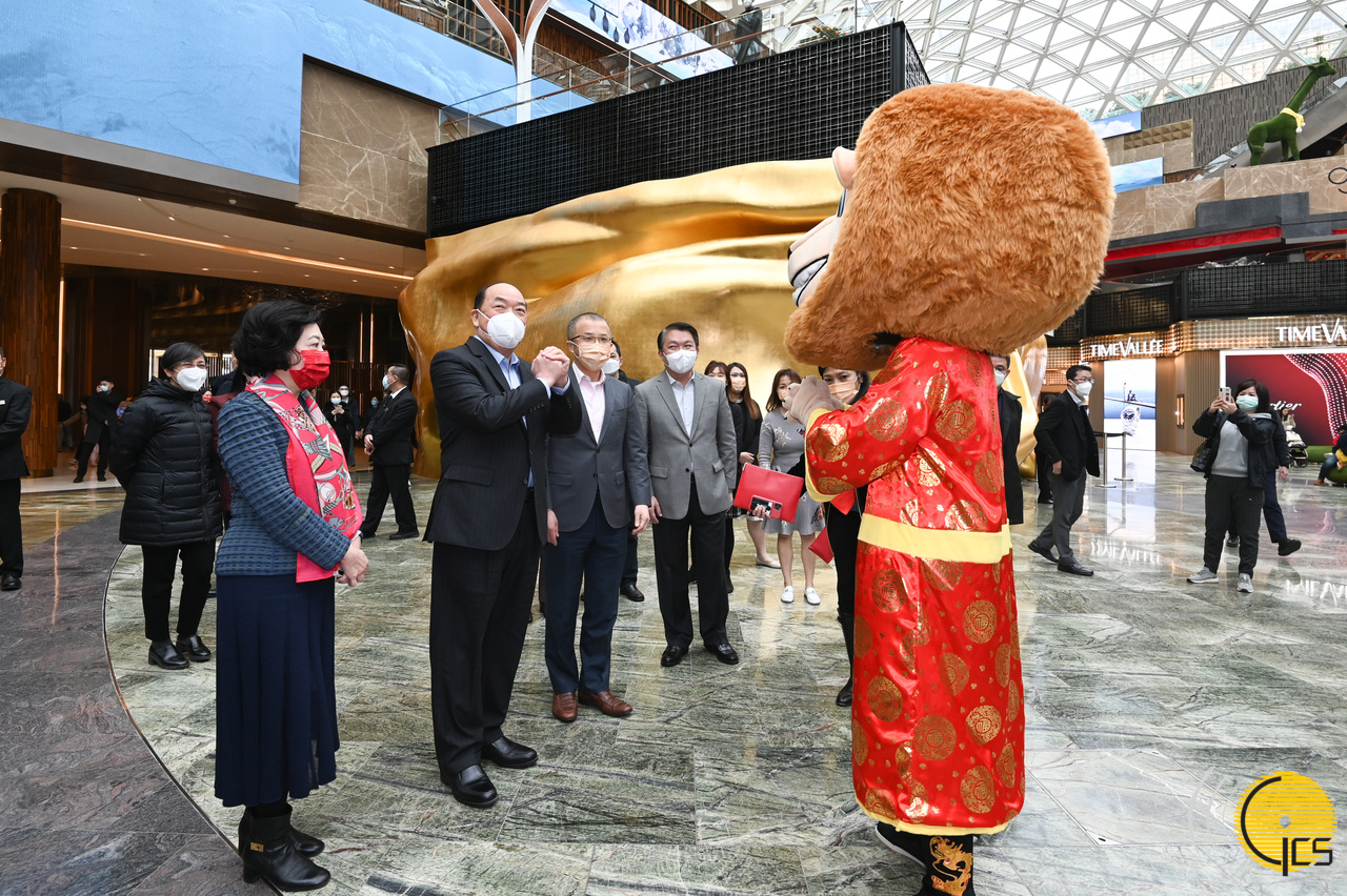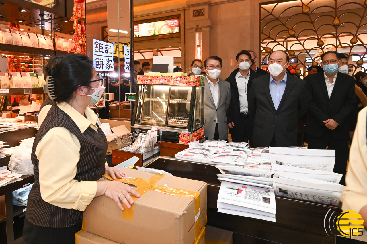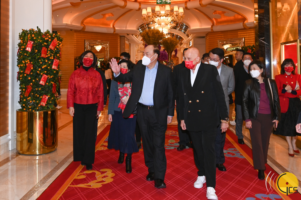 行政长官在瞭解各项非博彩元素设施项目期间不时向商户拜年,关心商户在新春期间经营情况,沿途并向综合度假休闲企业的员工、居民和旅客问好,致以新春祝福。