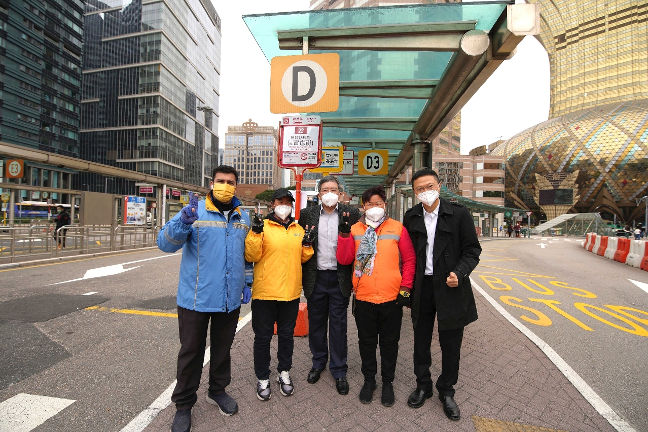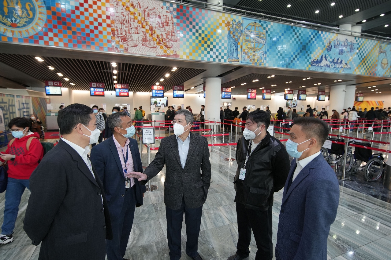 运输工务司司长罗立文与辖下相关部门领导到码头、机场、巴士站、轻轨站及内港等视察,了解海陆空交通站点及渔船停泊情况,并感谢公共交通运输人员在节假日期间为市民和旅客提供服务。
