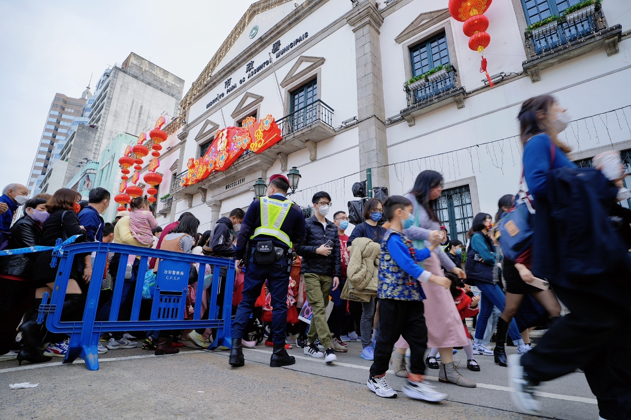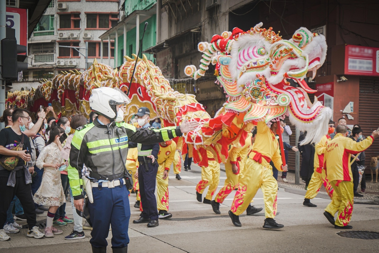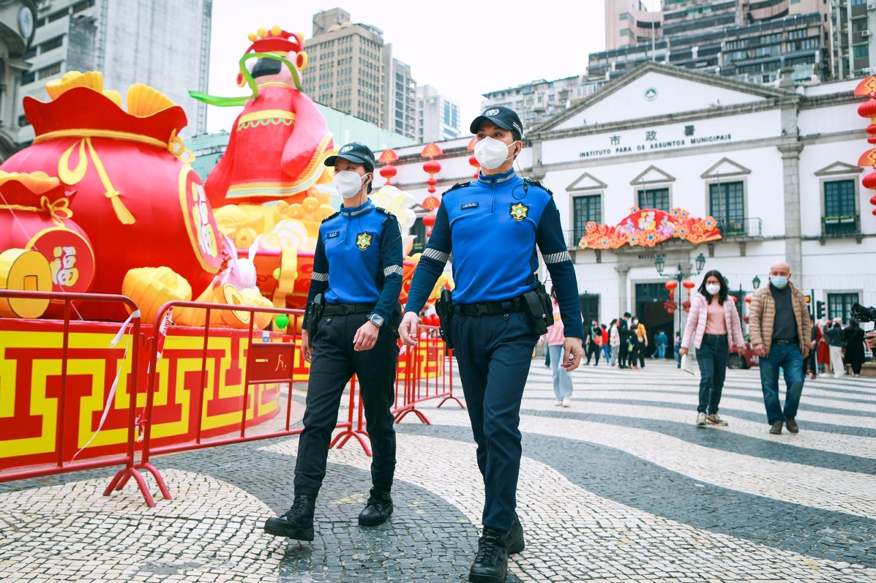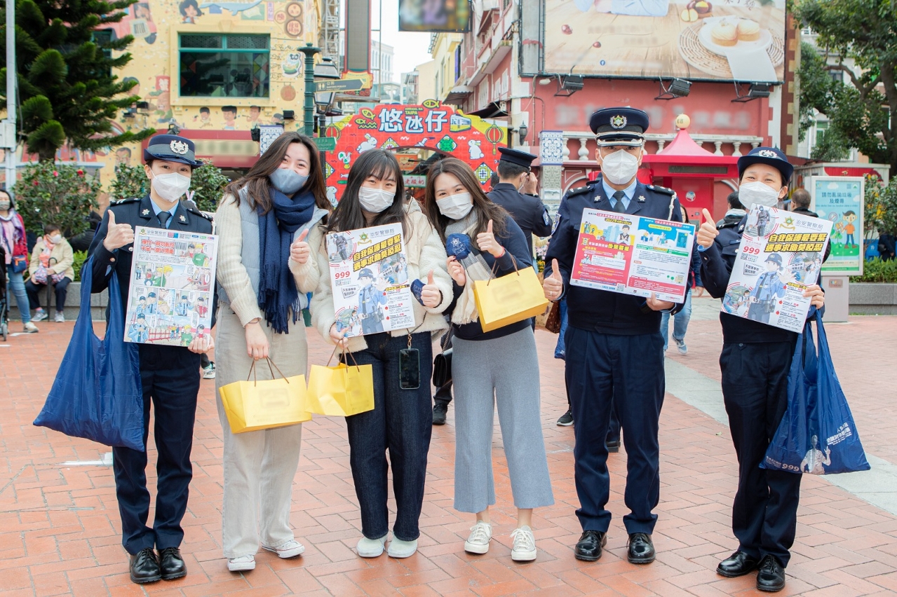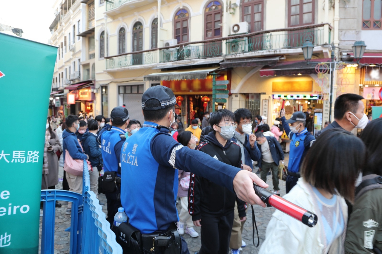 农历新年年三十至年初六(1月21日至1月27日)期间,本澳举办多项大型节庆活动,治安警察局在各区加强警务部署,包括于年三十晚上在众多庙宇外疏导人流,于年初一至年初三在本澳首办“新马路任我行——步行区试行计划”预先制定了预案及派遣人员在该区及周边进行疏导工作,同时亦于年初三晚上的农历新年花车汇演巡游路线及烟花表演观赏区域维持秩序。在上述活动中,市民及旅客均积极配合警方指示,整体秩序良好。此外,治安警察局亦派员到关闸口岸及旅游旺区进行预防罪案宣传,提高市民及旅客的防罪意识。