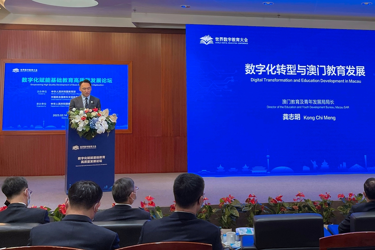 此外,龚志明局长应邀出席在北京举行的世界数字教育大会活动,在“数字化赋能基础教育高质量发展”论坛上就“数字化转型与澳门教育发展”的主题发言,分享了澳门持续推动教学数字化转型的经验,强调未来继续在发展智慧教育方面深化改革,借鉴其他地区的经验,参与和利用各项国际教育研究,助力澳门智慧教育的发展。一行于会上和来自各地的教育专家学者进行了深入的交流,汲取许多宝贵的经验,收获丰硕。