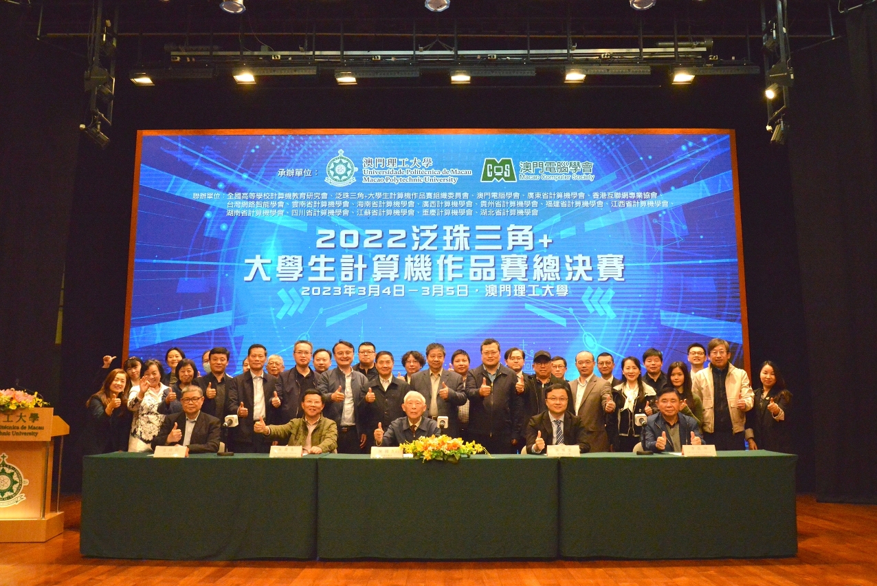 由澳门理工大学及澳门电脑学会联合承办的“2022泛珠三角+大学生计算机作品赛总决赛”,于3月4至5日圆满举行,该比赛由全国高等学校计算机教育研究会、泛珠三角+大学生计算机作品赛组织委员会、广东省计算机学会、香港互联网专业协会、台湾网络智能学会、云南省计算机学会、海南省计算机学会、广西计算机学会、贵州省计算机学会、福建省计算机学会、江西省计算机学会、湖南省计算机学会、四川省计算机学会、江苏省计算机学会、重庆计算机学会、湖北省计算机学会协办。作品赛吸引全国各地一万多名大学生参加,来自包括广东、江西、福建、湖南、海南、贵州、云南、四川、重庆、广西、湖北、江苏,以及香港、澳门、台湾地区等十五个省市及地区超过五十八队晋级总决赛参赛队伍施展浑身解数。参赛队伍展现的科技创新实力,有助促进泛珠三角地区、粤港澳大湾区及全国创新人才的互动及专业发展,进一步提升大学生专业水平,为业界培养优秀科创人才起积极作用,有效提升创新科技发展竞争力。