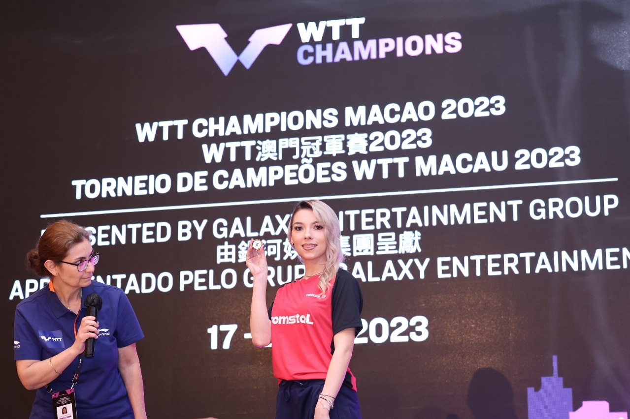 由体育局、世界乒乓球职业大联盟(WTT)及银河娱乐集团主办、澳门乒乓总会协办的「WTT 澳门冠军赛 2023 ─ 由银河娱乐集团呈献」将于4月17日至23日一连七天在塔石体育馆举行精彩的赛事,主办单位今天 (15日)进行了抽签仪式。体育局局长潘永权、银河娱乐集团董事程裕升,以及球员瑞典特鲁斯莫雷加德及罗马尼亚伯纳黛特施佐科斯出席仪式。