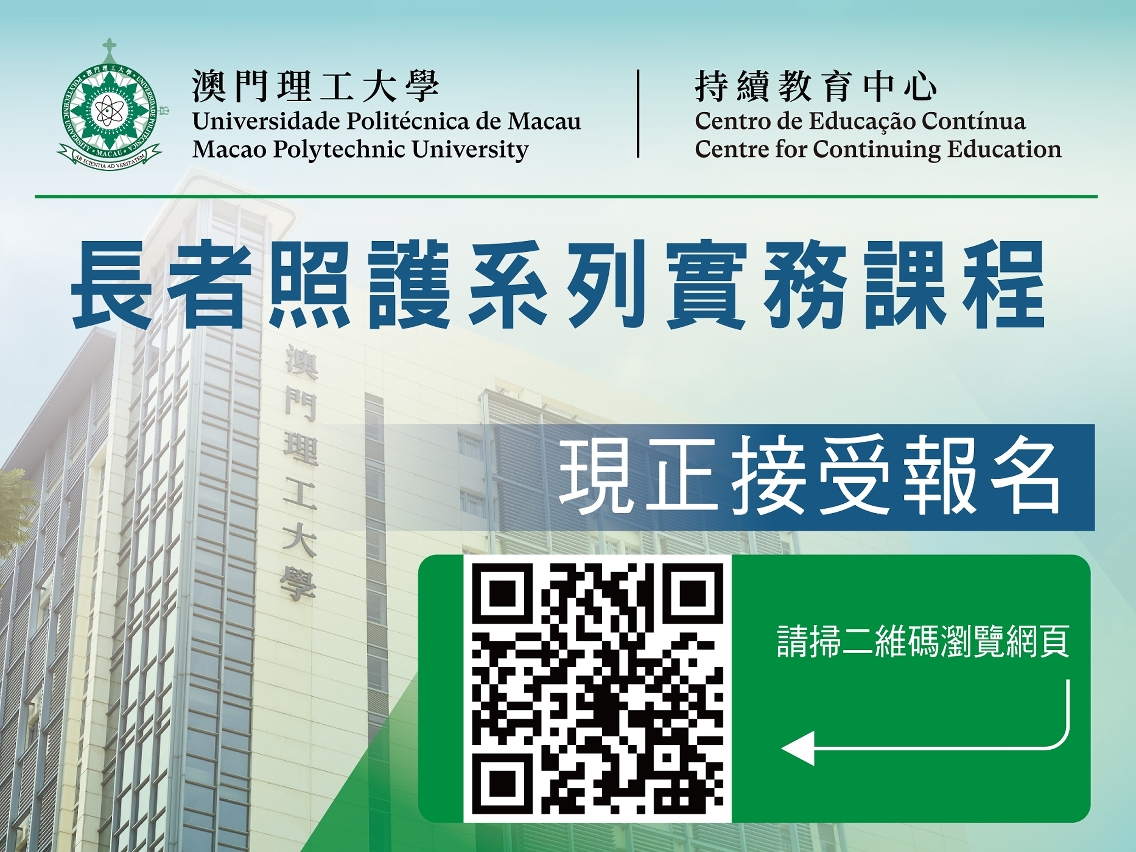 随着澳门步入老龄化社会,为提高对患失智症长者照护的专业水平,澳门理工大学持续教育中心将开办“失智症患者照护课程”,介绍失智症理论和照顾技巧,让有需要照顾失智症患者的医护人员、患者家属或家庭照顾者,从安全照顾、营养与饮食、精神行为问题、危机处理,以及照顾者的自我关怀等方面认识相关的理论及实务,使失智症长者得到安全和适切的照顾,并促进构建理解、关爱及支持的共融社区。
