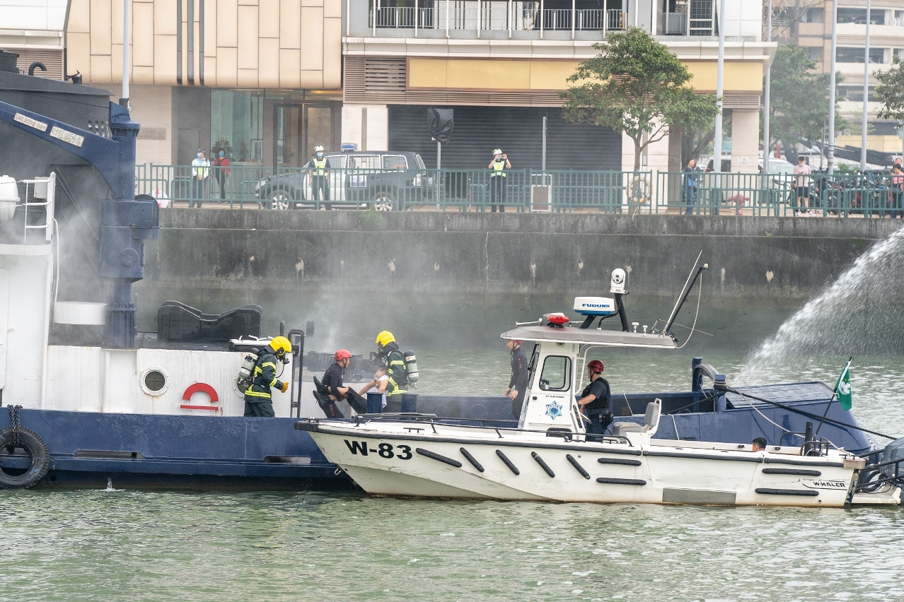 • 模拟突发事件:澳门海关登上锚泊中的冒烟船只进行搜救