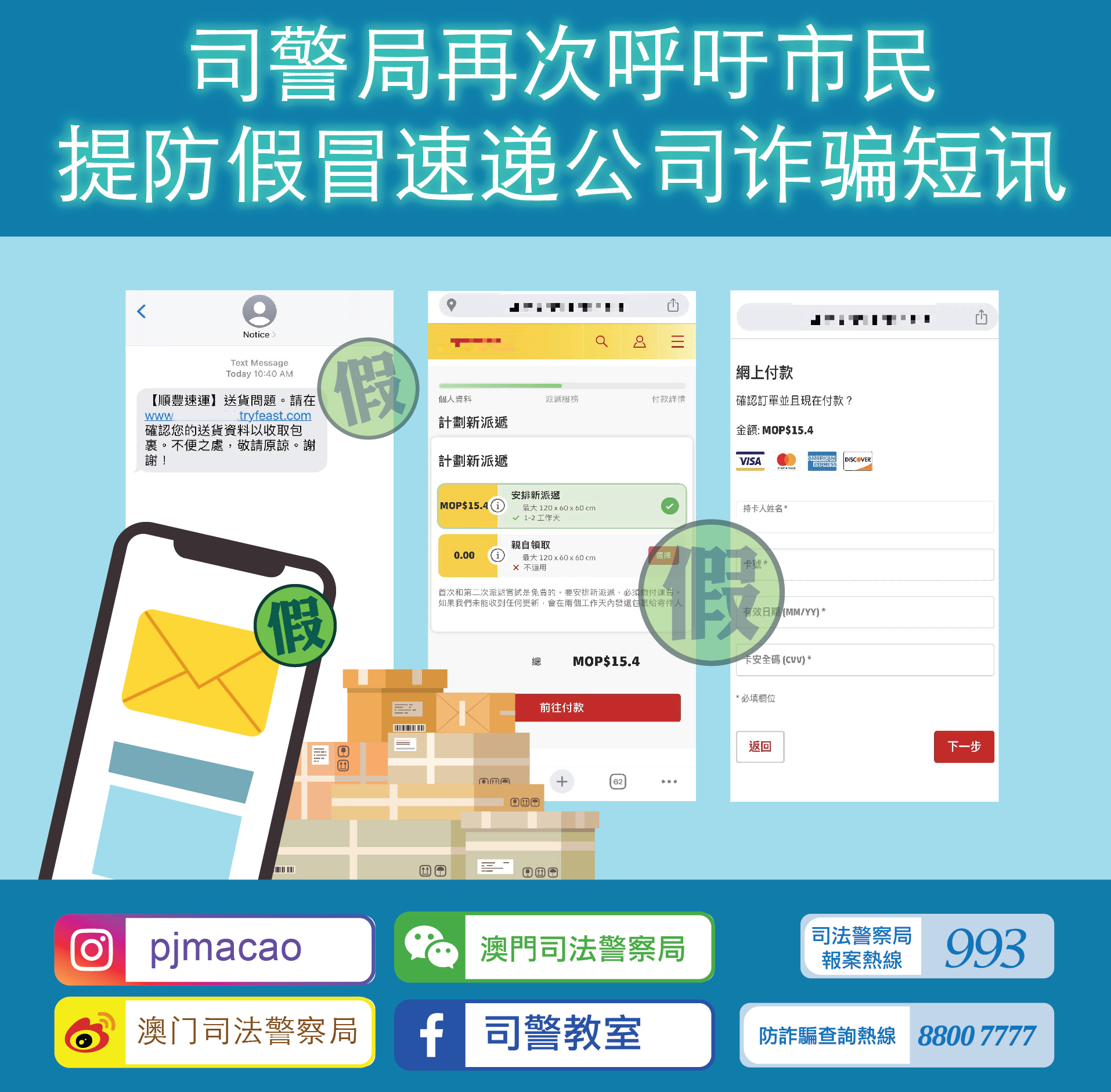 司警局再次呼吁市民提防假冒速递公司诈骗短讯