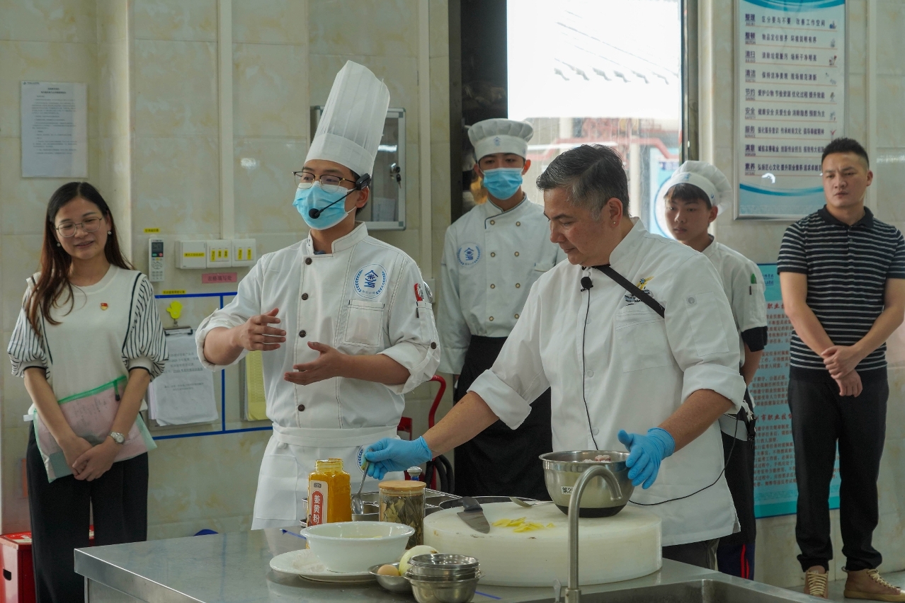 5月25日下午,“粤澳职业教育合作暨粤澳厨艺学习交流”活动于广州市轻工技师学院粤菜师傅培训基地举行。澳门旅游学院土生葡人后裔葡国菜名厨Fernandes Manhao Antonieta(马央)应邀授课,广州岭南国际酒店管理有限公司人力资源部副总经理陈容、人力资源部总监王玮,广州市轻工技师学院院长钟秀平、副院长李娉婷、澳门旅游学院及相关部门负责人参加了活动。