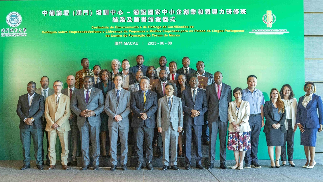 由中葡论坛(澳门)培训中心主办、澳门城市大学承办的“葡语国家中小企创业和领导力研修班”于6月9日假澳门旅游塔会展娱乐中心举行结业典礼暨证书颁发仪式。