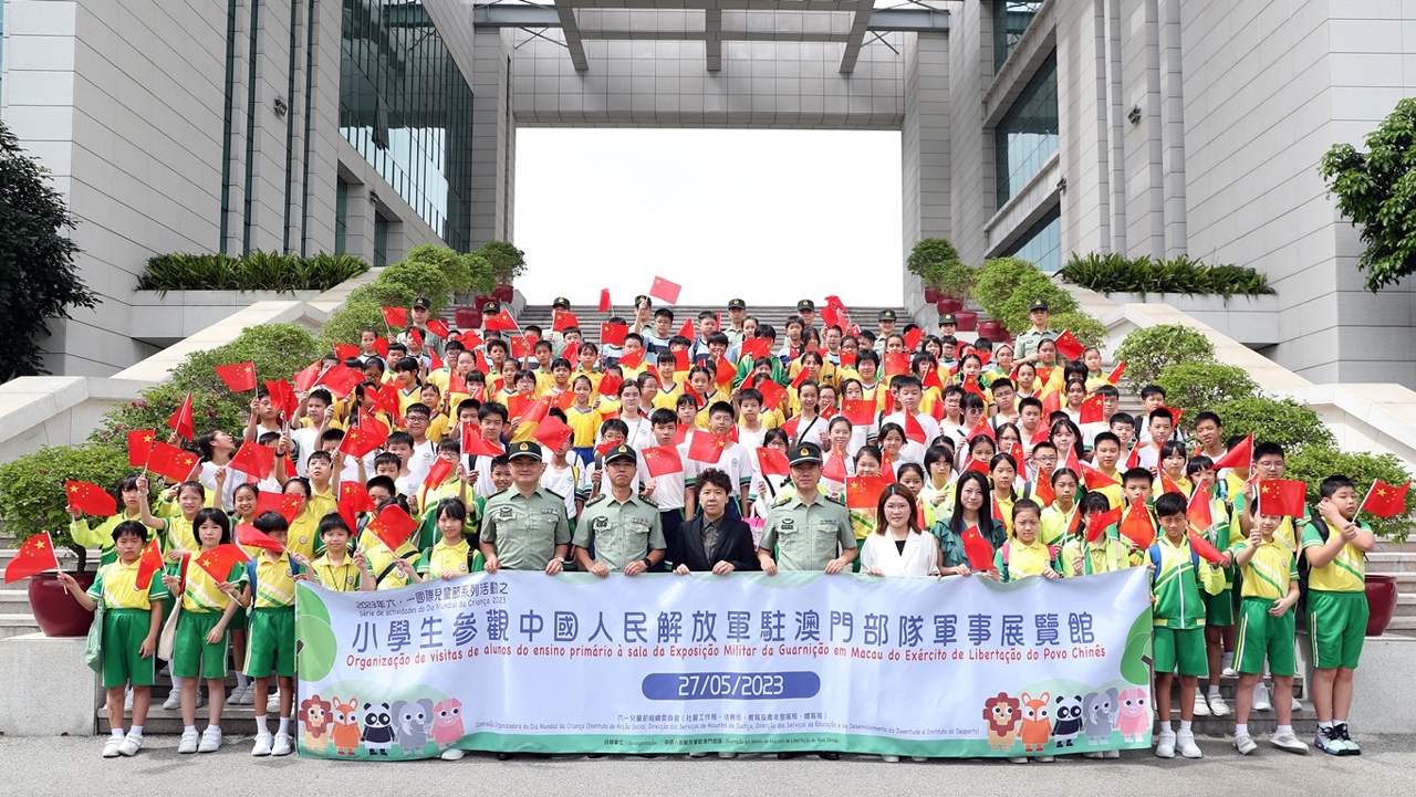 为庆祝六.一国际儿童节,六.一国际儿童节组织委员会(社会工作局、教育及青年发展局、法务局、体育局)与中国人民解放军驻澳门部队合办“2023六.一国际儿童节系列活动之小学生参观中国人民解放军驻澳门部队军事展览馆”,于2023年5月27日(星期六)顺利进行。活动目的是让澳门小学生一起感受节日的气氛,及对中国人民解放军驻澳门部队有更多的认识,藉此培养爱国爱澳精神。教育及青年发展局组织了来自澳门9所学校超过260名小五及小六学生参观中国人民解放军驻澳门部队氹仔军营驻军军史馆和解放军军史陈列馆。