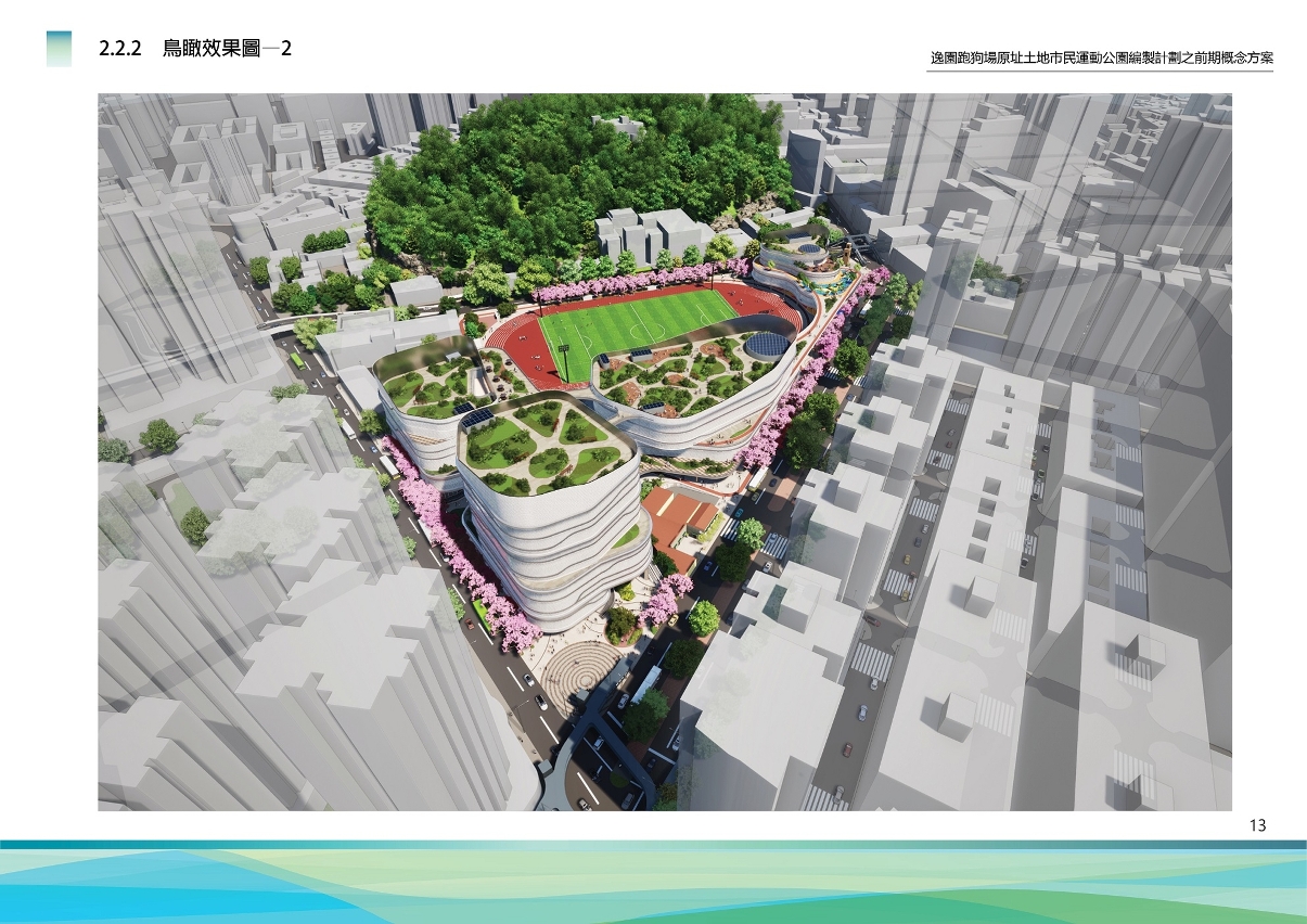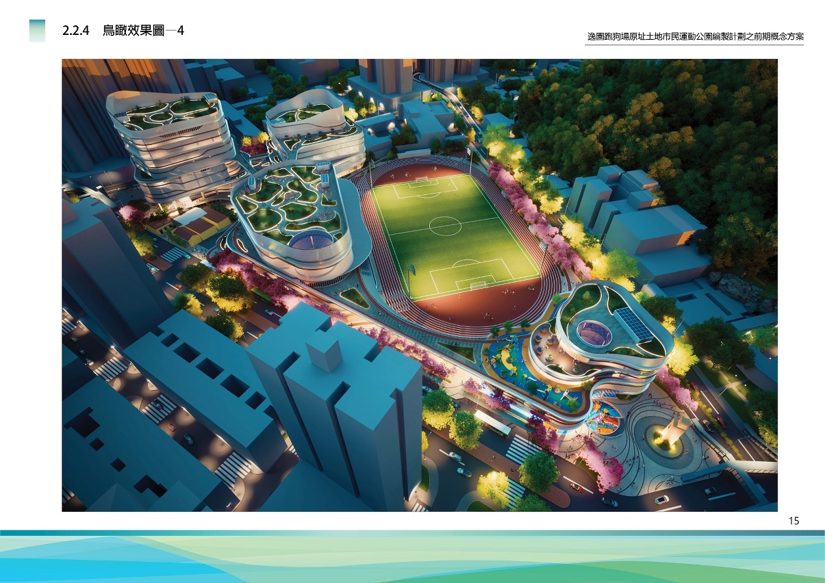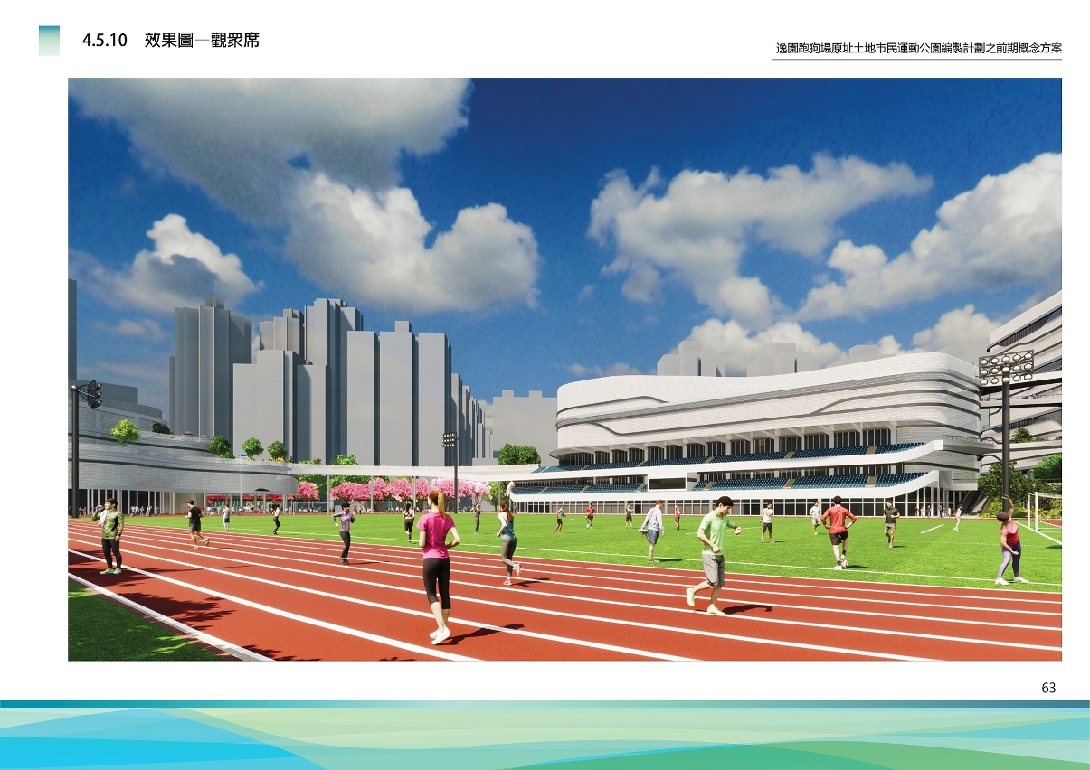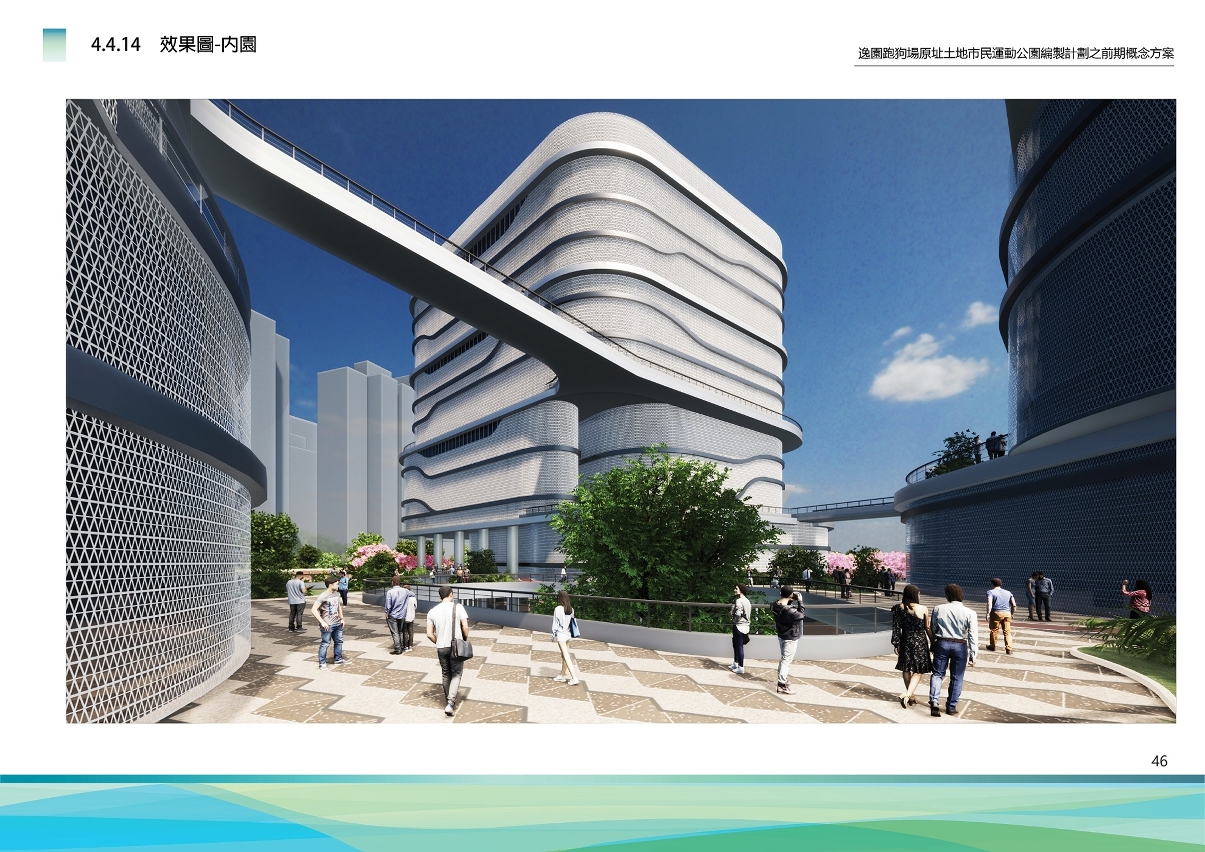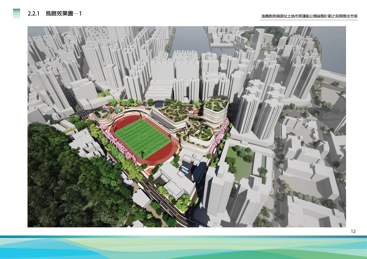 原逸园狗场及莲峰体育中心地段总面积约40,000平方米,计划透过整体规划设计,改建为集运动、游戏、亲子、社区活动、休闲文化等多元复合的市民运动公园,总建筑面积约74,000平方米,把运动与居民日常休闲融为一体,促进居民身心健康发展。