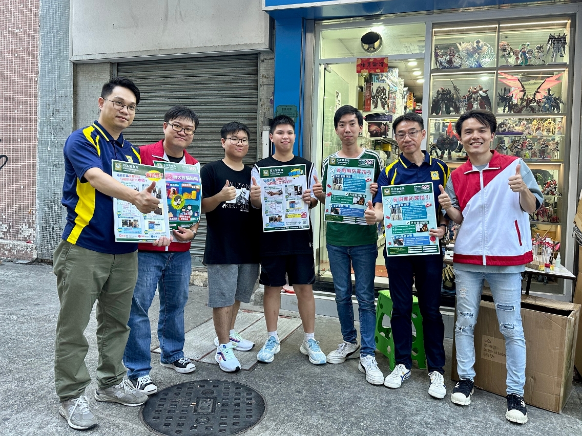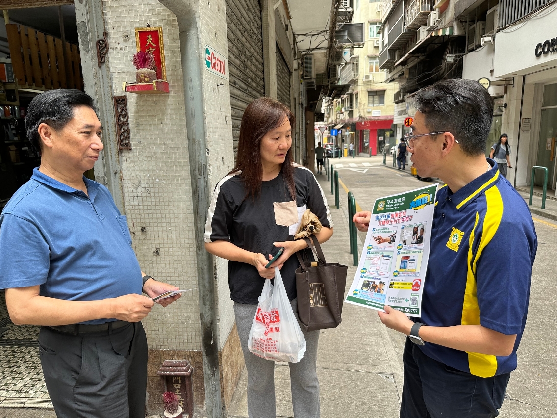 暑假期间为居民外游、探亲和修缮家居的高峰期,为适时提醒居民注意防罪,司法警察局联同“司警局大厦防罪之友”成员到本澳各区进行暑期防罪宣传,向居民、商户及物业管理前线人员讲解防罪资讯,警民合力防范罪案发生。