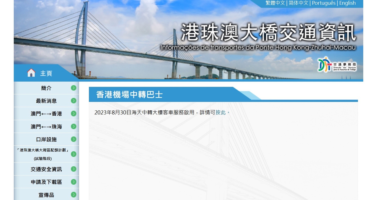 澳门交通事务局港珠澳大桥交通资讯:https://www.dsat.gov.mo/hzmb/bus_hk_airport.aspx