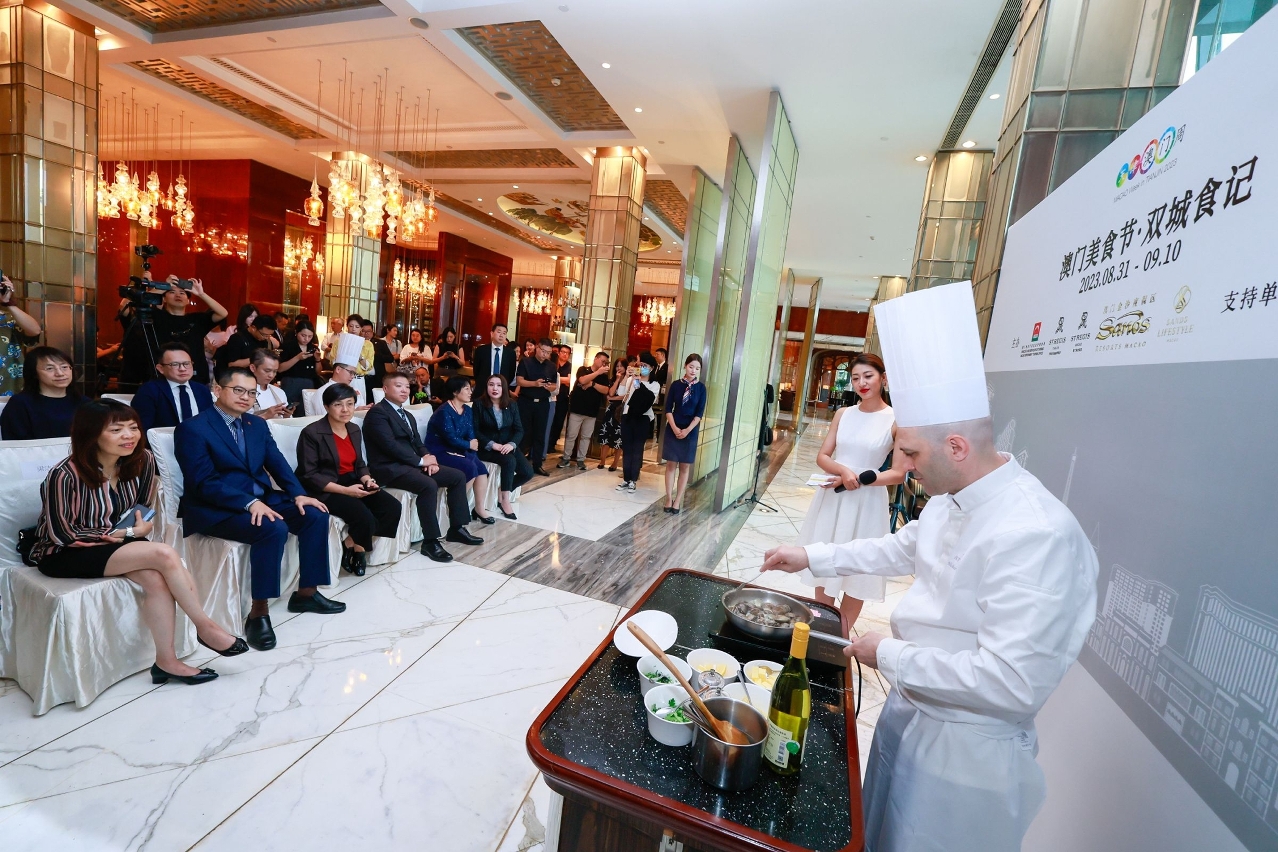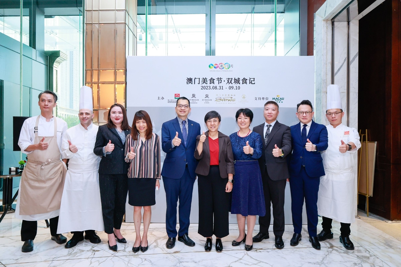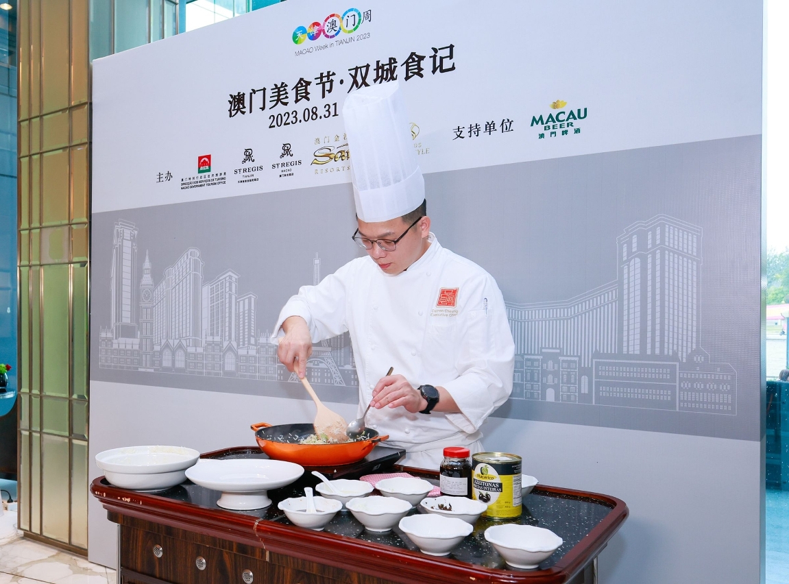 由澳门特别行政区政府旅游局、金沙中国及天津瑞吉金融街酒店合办、澳门啤酒为支持单位的“澳门美食节.双城食记”推广活动于8月31日至9月10日(逢周四至周日)在天津瑞吉金融街酒店河岸餐厅呈献,由金沙中国旗下“品粤轩”中菜行政总厨张锦东及澳门瑞吉酒店“雅舍”行政助理总厨Michele Dell'Aquila亲身到天津主理,送上一系列别具特色的粤菜及澳葡地道美食包括:葡式陈皮炆牛脸颊肉、XO酱马介休炒兰花苔、鸳鸯橄榄蛋白炒饭、葡式海鲜饭、葡式炒蚬及木糠布丁,并与天津瑞吉酒店厨师团队分享菜谱,推出主题自助晚餐,当中亦有天津美食,互相交流厨艺及美食文化。