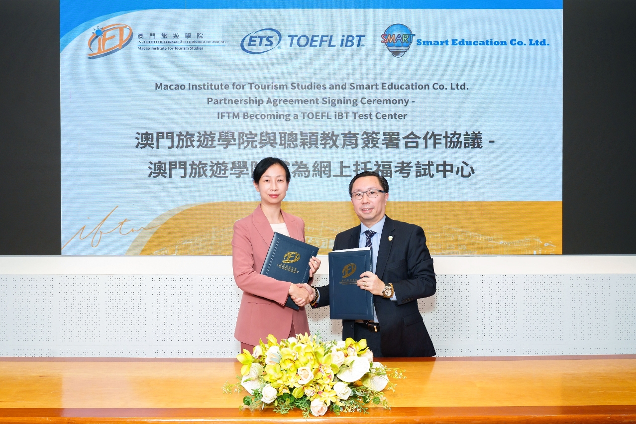 澳门旅游学院持续教育学校一直提供多元化的课程,为澳门乃至大湾区培养高素质的复合型人才,众多学生通过本校的课程及评核取得了国际认可的专业资格。自2017年起学院提供了托业(TOEIC)考试及培训班,通过培训, 学生们获得不错的考试成绩。是次澳门旅游学院成为托福考试中心后,除了会提供网上托福考试(TOEFL iBT®)外,亦会提供与考试相关的研习课程,相信这将能推动更多的学生参与这个能与世界接轨的评核,为助力澳门成为世界旅游休闲中心输送更多具备语言优势的人才。