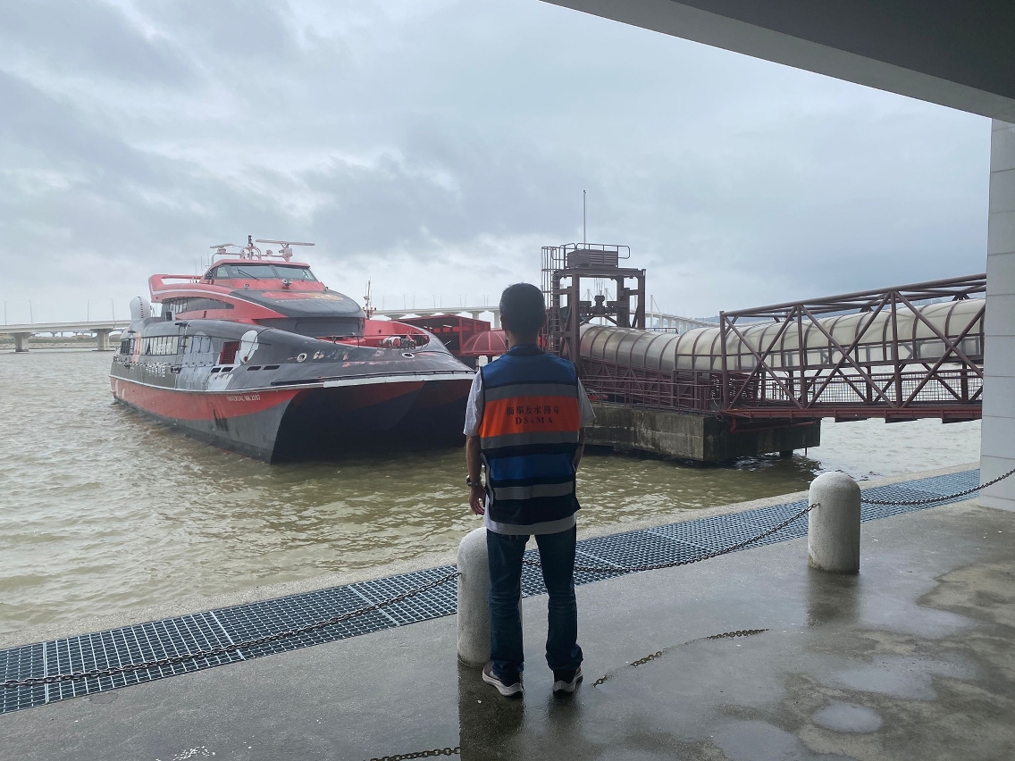 因应香港天文台将于16:20改发三号风球,海事及水务局加派人手检查码头设施,维持码头秩序,并协调船公司准备好复航的安排。外港客运码头首班前往香港的客船预计于17:00开出,氹仔客运码头则预计须于晚上才有条件陆续恢复往来香港的航班,而珠海、深圳等的内地航班今日会继续暂停。