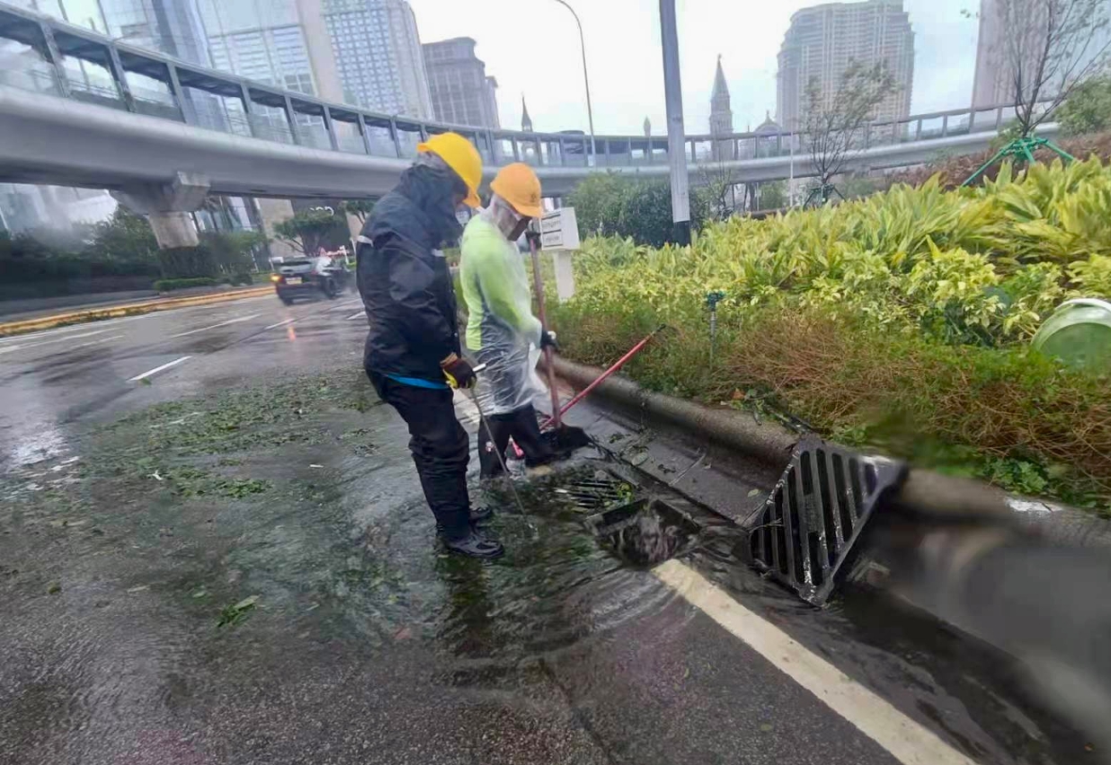 「苏拉」袭澳期间,市政署持续派员在安全情况下清理渠口及路边杂物,并用人手打用渠盖疏导雨水,保持渠道畅通。
