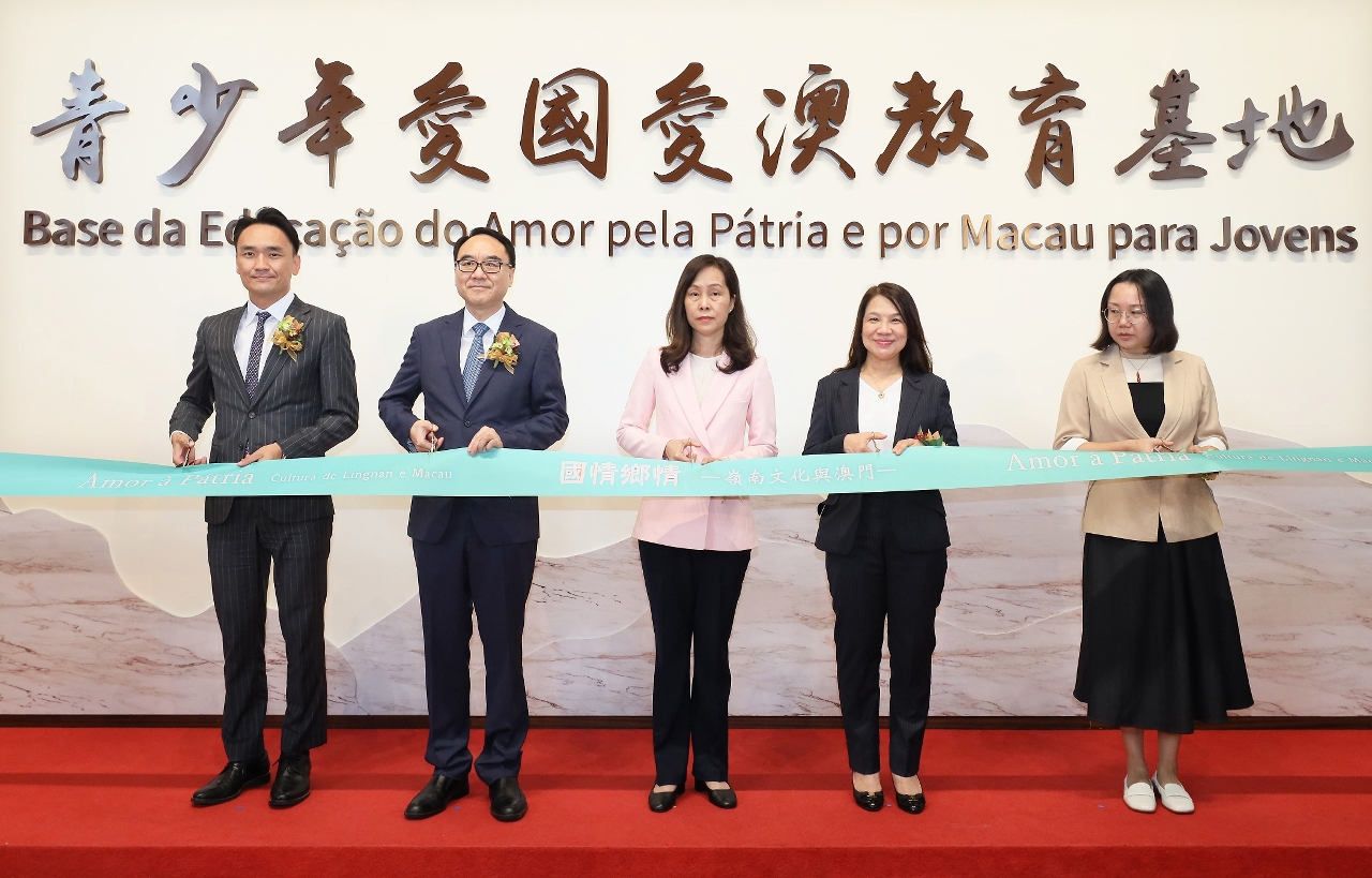 为了持续推动爱国爱澳教育,教育及青年发展局辖下青少年爱国爱澳教育基地与广东省博物馆合作,以“国情乡情——岭南文化与澳门”为主题开展新一期展览。开幕式由社会文化司司长欧阳瑜、中央人民政府驻澳门特别行政区联络办公室教育与青年工作部李雪飞部长、社会文化司司长办公室主任何钰珊、教青局局长龚志明以及广东省博物馆副馆长赵丽帆主持,出席嘉宾还包括教青局副局长丁少雄、阮佩贤、黄嘉祺、教育委员会委员、青年事务委员会委员、各教育及青年团体代表,以及青少年爱国爱澳教育基地专责工作小组成员。