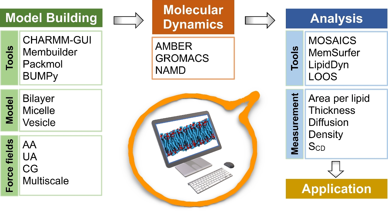 近年,计算模拟方法大大增强了各界对生物膜结构、动力学性质和功能的微观认识,澳门理工大学人工智能药物发现中心教授郭晶晶、教授刘焕香与博士李舒,联合新加坡南洋理工大学教授慕宇光等,于7月份在计算数学排名第一的期刊WIREs Computational Molecular Science(引用分数:20.1;影响因数:11.4)发表了题为《Application of computational approaches in biomembranes:From structure to function》(计算模拟方法在生物膜研究中的应用:从结构到功能)的论文(https://doi.org/10.1002/wcms.1679)。
