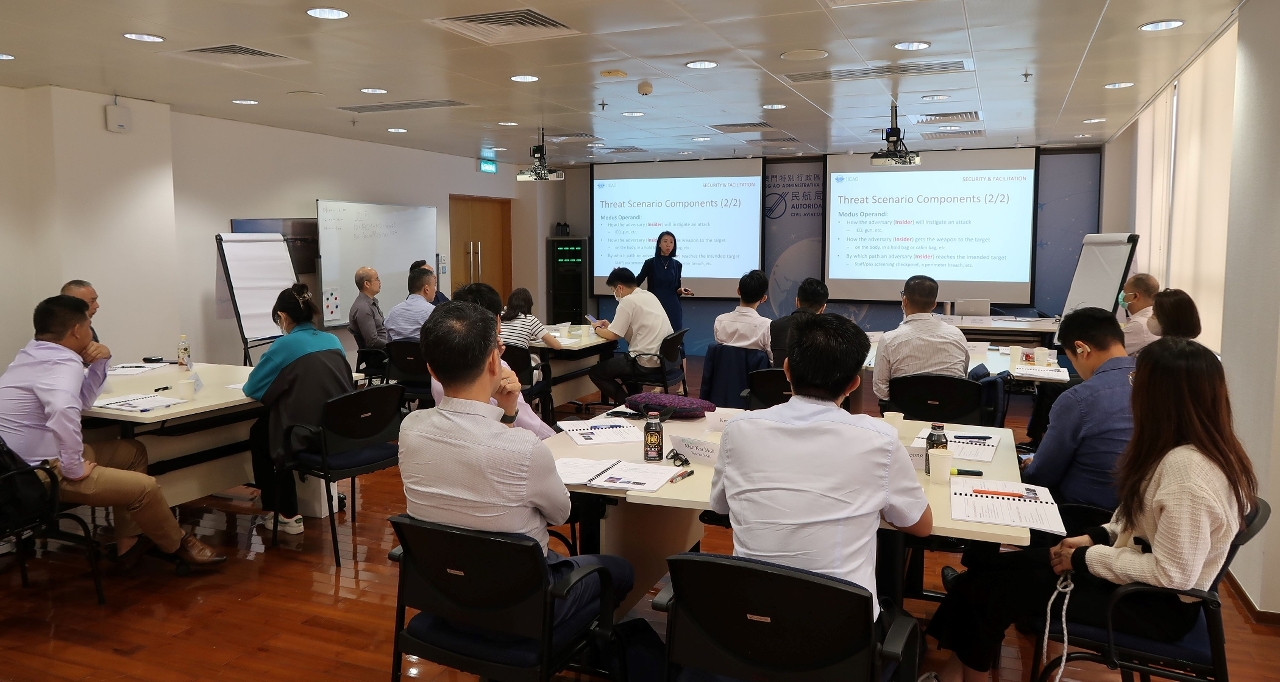 民航局透过国际民航组织的「亚太区航空保安互助拓展计划」,与该组织合作在澳定期举办航空保安培训课程,让各成员国和地区提升在航空保安的监督和执行能力。“内部人员风险管理工作坊”是双方于2023年合作在澳举办的培训活动,于9月4日至8日在民航局办事处进行,以辨析内部人员构成威胁为主题,透过理论知识、例子说明、小组讨论和模拟演习等环节,让从事航空保安监督人员和从业员掌握辨识能力,以及按照国际民航公约附件十七有关航空保安所要求的标准去制定预防措施,降低内部威胁风险,确保航空保安营运的安全。