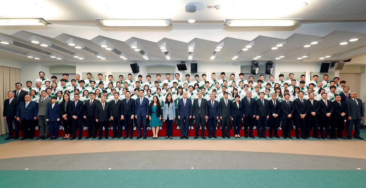 出席辞行仪式的还包括社会文化司司长欧阳瑜、社会文化司司长办公室主任何钰珊、体育局局长及中国澳门体育代表团团长潘永权及体育委员会委员等。