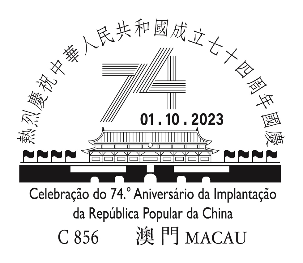 为庆祝中华人民共和国成立七十四周年国庆,邮电局特于二零二三年十月一日上午九时至下午二时,在邮政总局集邮商店设置临时柜台,为市民提供加盖“热烈庆祝中华人民共和国成立七十四周年国庆”纪念邮戳服务。