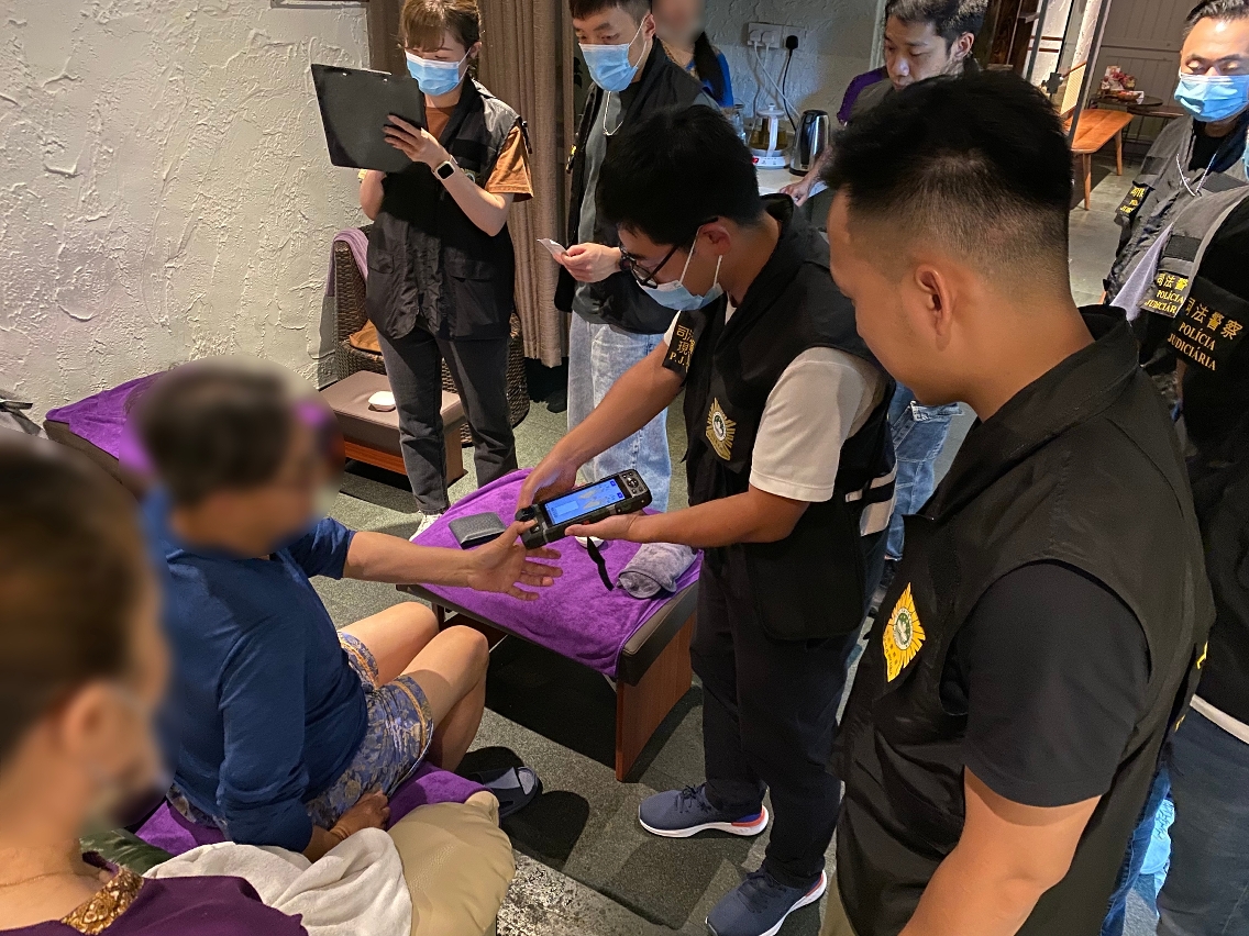 2023年9月15日16时至20时,司警局共派出25名刑事侦查人员前往本澳各区按摩中心及周边进行巡查。行动中合共截查了100名人士(40男60女),发现当中1名内地男子逾期留澳,故司警局人员将其带返司警局进行身份认别程序及调查。