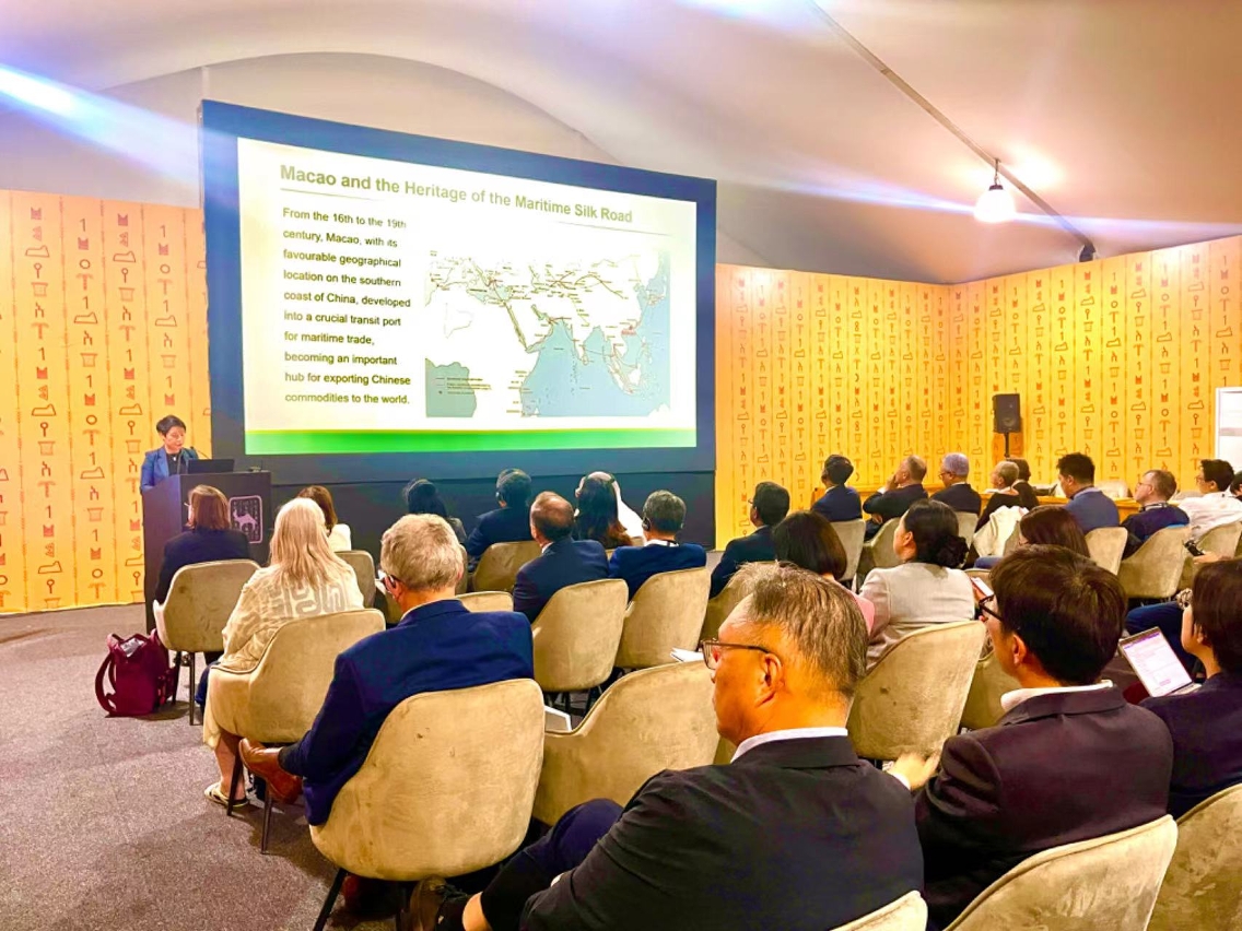 大会举行期间,梁惠敏与国家文化和旅游部副部长、国家文物局局长李群、国家文物局副局长关强及世界遗产中心亚太区主任Himalchuli Gurung、中国古迹遗址保护协会代表等进行交流,汇报澳门文化遗产保护工作及听取指导意见。此外,梁惠敏参与了由国家文物局及国际古迹遗址理事会主办的“海上丝绸之路及共享世界遗产未来”周边会议并作专题发言,就澳门海丝遗产的价值及保护管理工作等向国家文物局、世遗中心代表、国际古迹遗址理事会代表及各地专家学者等作分享及介绍。