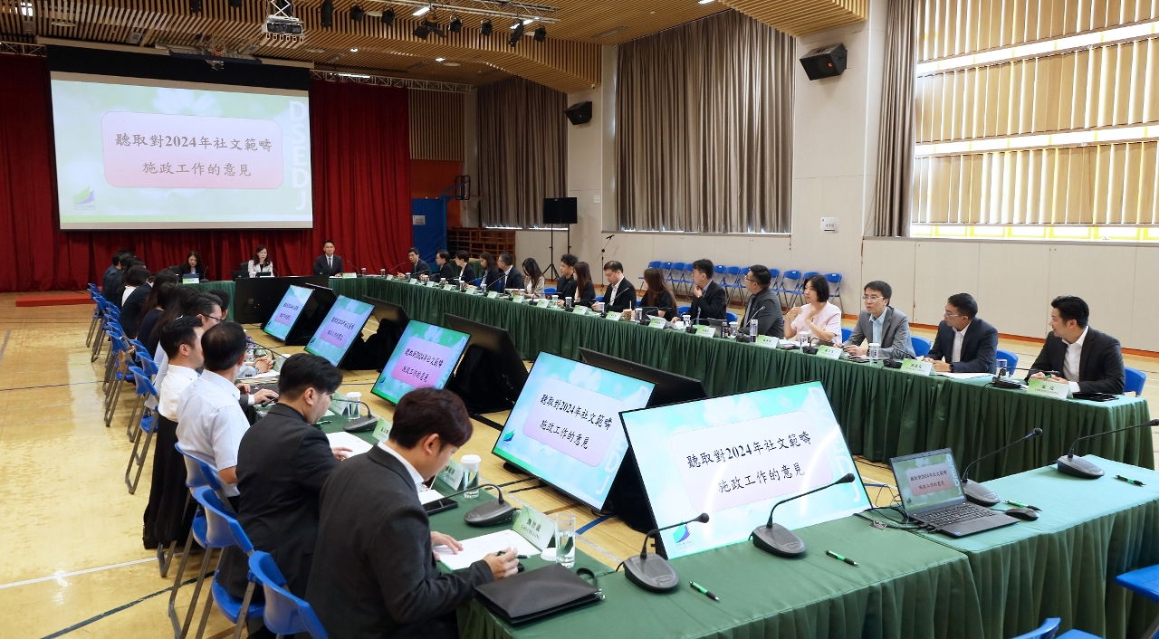 会议首先由欧阳瑜司长介绍社文范畴今年施政工作的执行情况及明年的部署,并听取委员对2024年社文范畴施政工作的意见及建议,社会文化司司长办公室主任何钰珊、教育及青年发展局局长龚志明、卫生局局长罗奕龙、社会工作局局长韩卫、文化局局长梁惠敏、药物监督管理局局长蔡炳祥、社会保障基金行政管理委员会主席容光耀、体育局代局长林莲娇、社会文化司司长办公室顾问罗灏芝等列席会议。多名委员就不同议题发表了意见,尤其关注到“1+4”经济适度多元发展,提出透过医疗旅游、体育盛事、艺文表演、文创产业等助力经济发展的建议,同时关注到人才培养机制、青少年的心理健康发展、横琴深合区“新街坊”项目的澳门学校建设情况等,以及就旧区活化、推动多元共融、弘扬社会正能量等提出意见和建议。