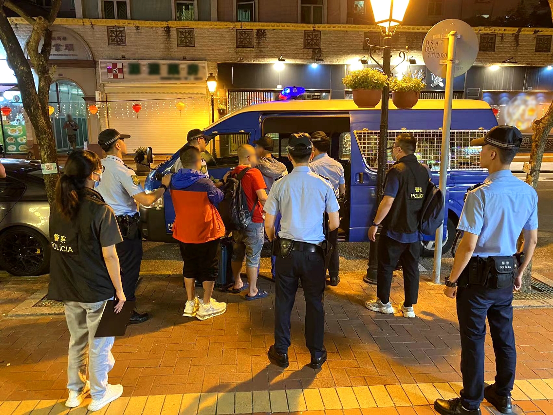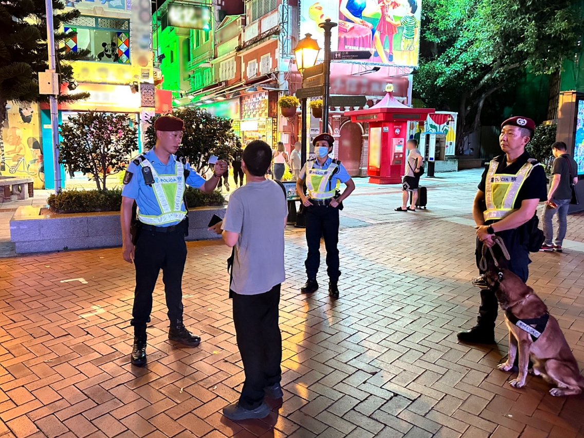 在警察总局统筹下,治安警察局于昨(20)日持续开展「雷霆2023」行动,以维护本澳社区良好治安环境。治安警察局辖下澳门警务厅、海岛警务厅、交通厅、情报厅及特警队联同警犬组共派出76名人员,分别在澳门各区巡查多间游戏机中心及按摩场所,亦在澳门中区、北区及路氹城金光大道一带加强截查可疑人士,以及不定点进行查车行动,以预防及打击各种不法行为和犯罪活动。