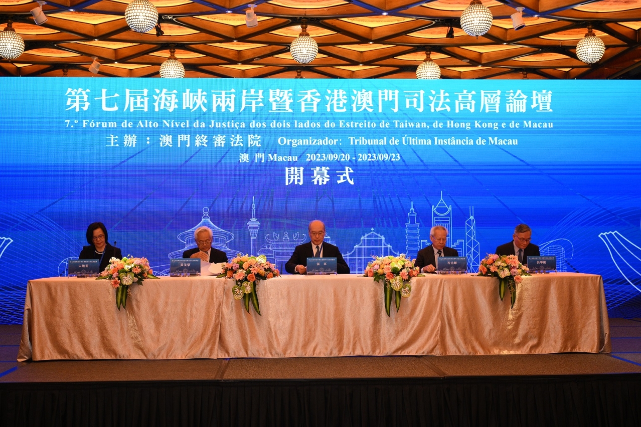 由澳门终审法院主办的“第七届海峡两岸暨香港澳门司法高层论坛”于2023年9月20日至23日假澳门美高梅酒店大宴会厅举行。本届论坛以“公正与效率”为主题,并分设“实体正义与程序正义”、“案件之管理”、“典型案例之社会和法律效果”和“法官职业素养建设与遴选制度”等四个子议题。