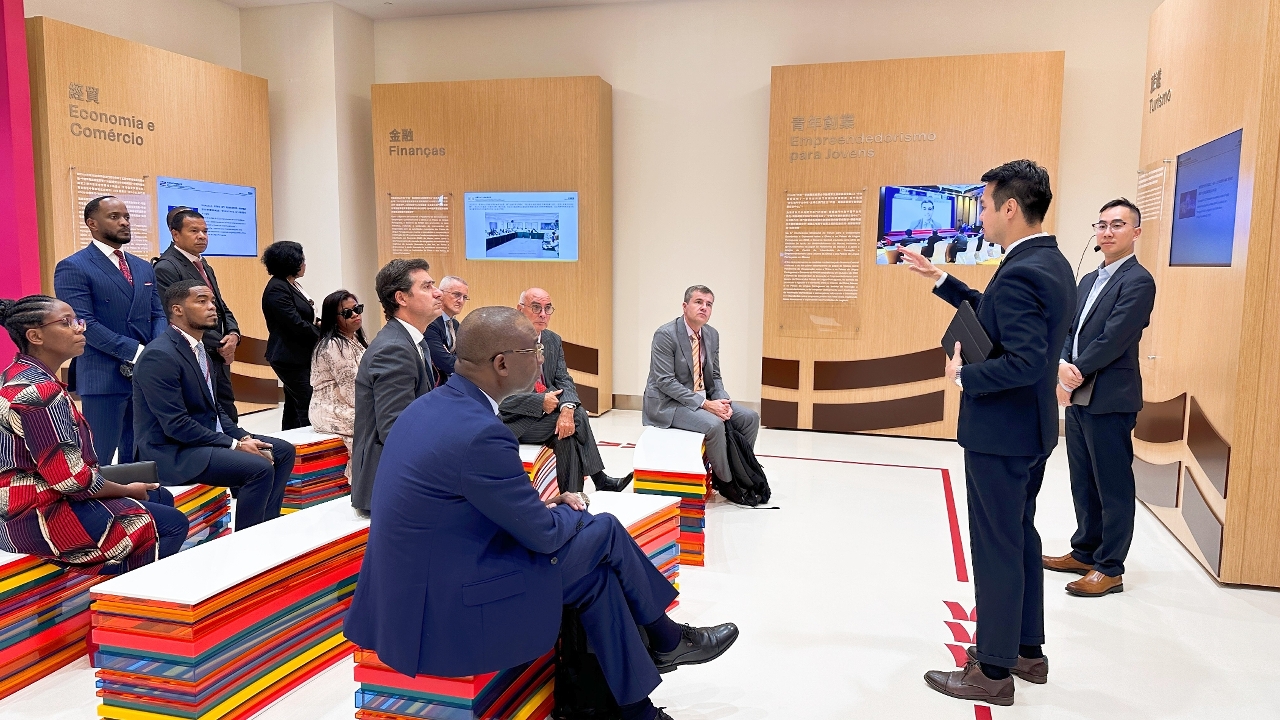 葡语国家央行官员到访贸促局位于“中国与葡语国家商贸合作服务平台综合体”内的展示馆,得到贸促局行政管理委员会主席余雨生、委员李藻森的接待。贸促局人员向与会者介绍了澳门“中葡平台”的发展历程,以及在经贸、金融、青年创业、旅游、中医药、文化、教育7个范畴的工作成果;参访的央行官员参观各个葡语国家的展示区和葡语国家产品展示中心,瞭解澳门在推动“中葡平台”建设方面的工作。